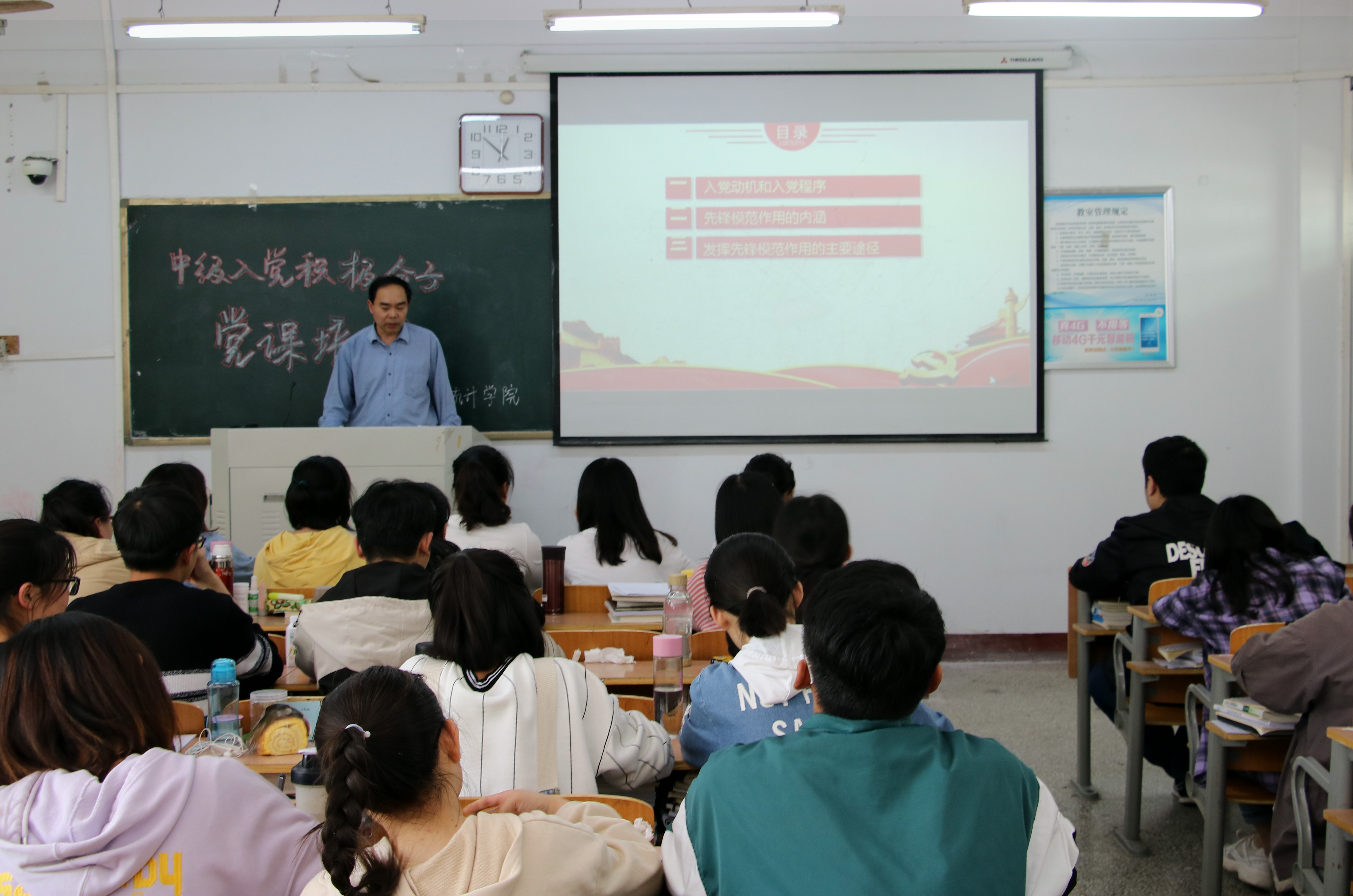 党课上,梁洪亮院长以充分发挥先锋模范带头作用,争取早日加入党组织为主题,从“入党动机和入党程序”,“先锋模范作用的内涵”,“发挥先锋模范作用的主要流程”三方面向入党积极分子们介绍了此次党课的主要内容。他提出,作为入党积极分子要提升自己的思想觉悟和政治素养,端正态度,实事求是,从不同的方面提升自己。接着,他强调,入党积极分子要认真贯彻落实党的十九大方针,努力学习,不忘入党初心,发挥好先锋模范的积极带头作用,从而带动更多的学生发展进步。