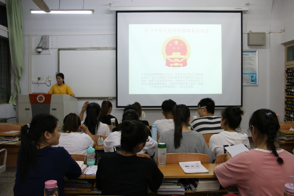 为更好地开展基层团支部的工作,宣扬国家安全法,提高学生的自我保护意识,欧美一级婬片AA片免费于6月5日晚在一号教学楼组织学生学习了《中华人民共和国国家安全法》。本次活动由欧美一级婬片AA片免费团总支组织部主办,18级全体学生参加。