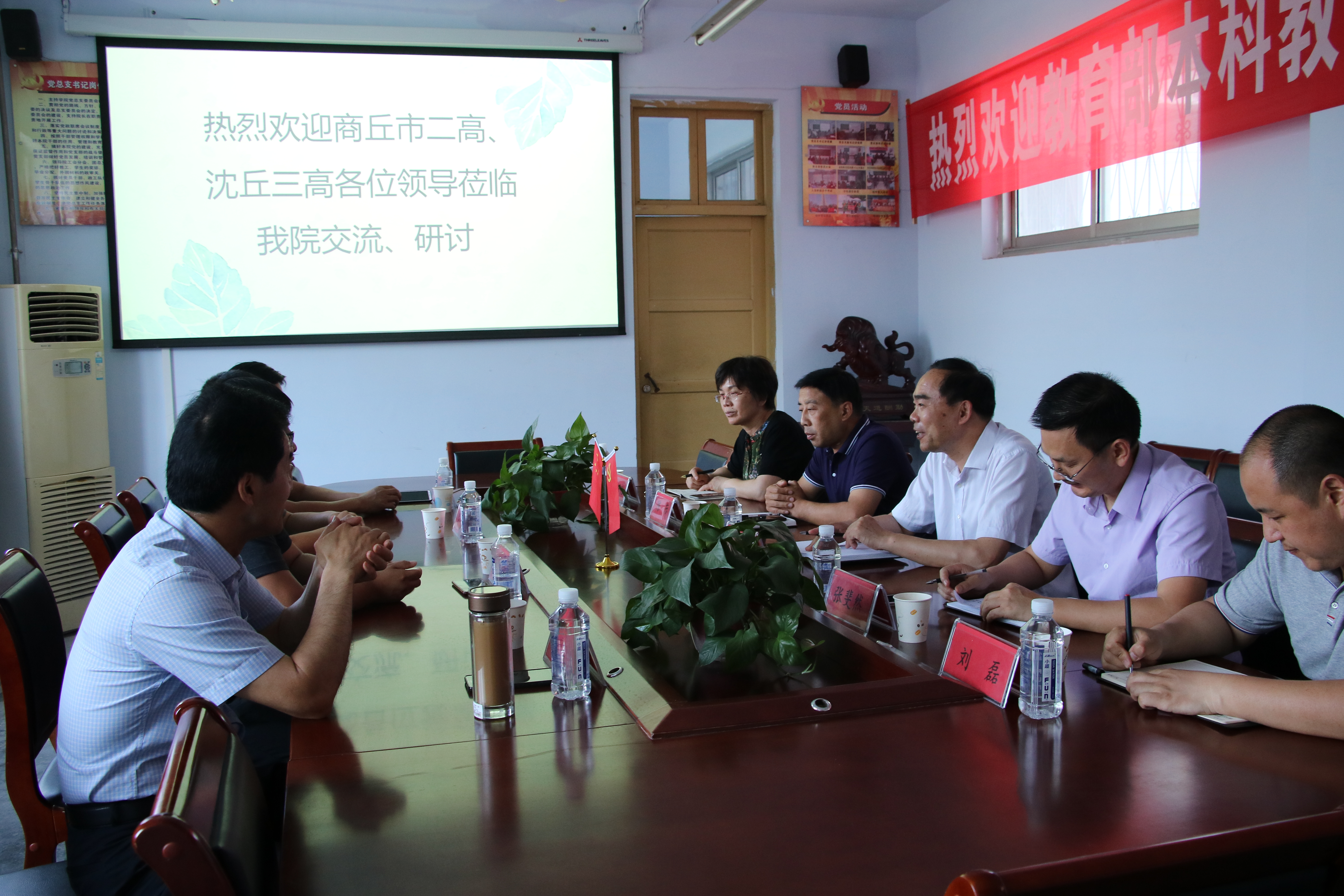 6月9号下午欧美一级婬片AA片免费举行“高中教育与大学人才培养交流会”,参加会议的有商丘市第二高级中学王宜安主任、郑余良主任、沈丘县第三高级中学宋金东校长和范俊峰主任和欧美一级婬片AA片免费全体领导班子成员。