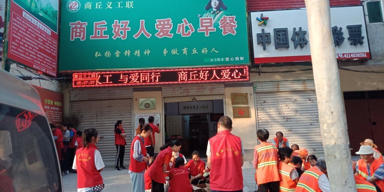 伴着清晨第一缕阳光,志愿者们骑着单车来到了商丘市好人爱心早餐店。志愿者们先对这里的环卫工进行了调查采访,询问了他们对于爱心早餐的想法,从环卫工的描述中志愿者们深切感受到他们对爱心人士的感激之切。