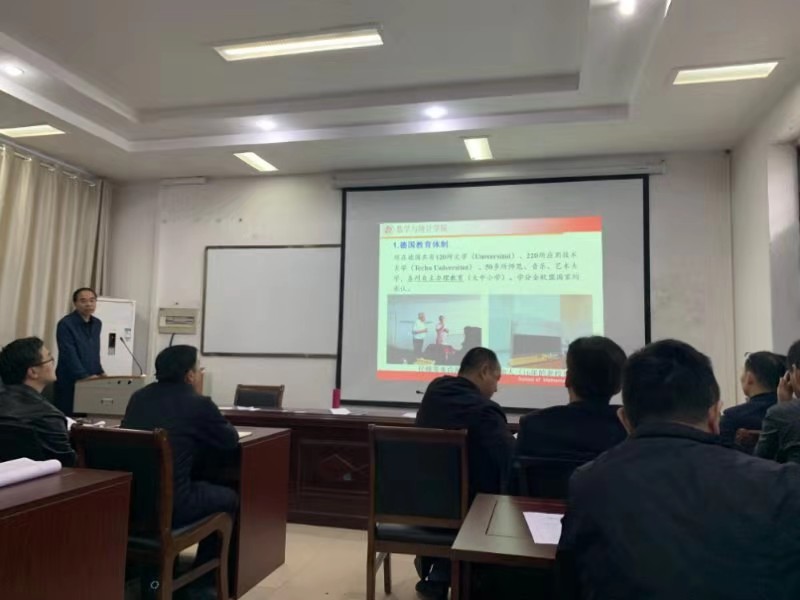 根据学校“不忘初心、牢记使命”主题教育工作安排和学院党总支本学期工作计划部署,结合学院应用型专业建设的实际情况,为进一步促进学院应用型建设,梁院长从自己随校外出考察德国慕尼黑市代根多夫应用技术大学讲起,从德国教育体制、德国应用技术大学、代根多夫应用技术大学简介、外出考察交流体会与思考四个方面向全体师生党员讲解了此次党课内容。通过梁院长的讲解,与会师生对国外的教育管理模式有了更加深入细致的了解,对比我校与国外大学情况,对实际工作当中的课堂教学以及学生实习实训有了更加深入的思考。