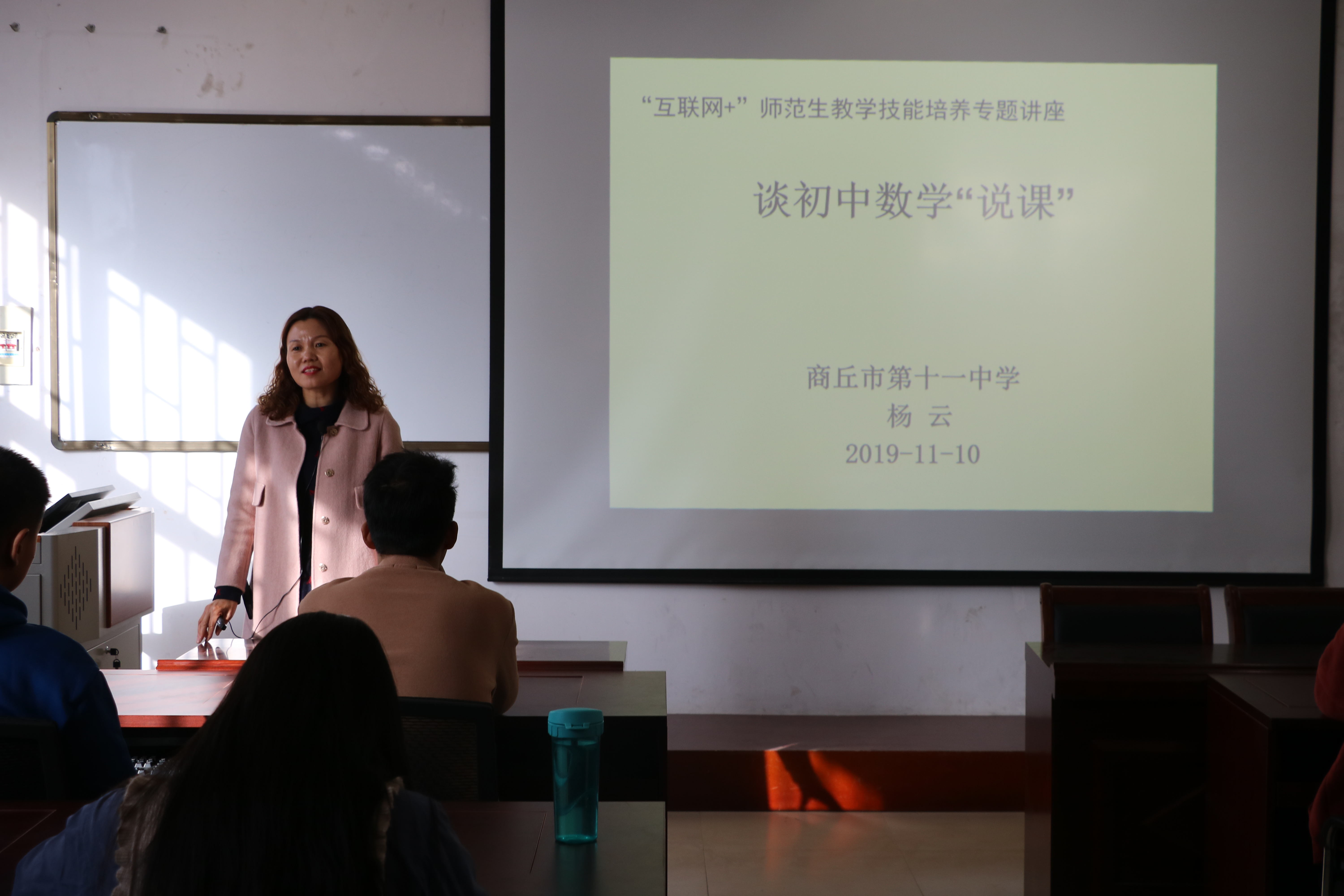 为切实提高师范生的说课能力,11月10日上午九点欧美一级婬片AA片免费“互联网+师范生技能培养”专题讲座之谈初中数学“说课”在睢阳校区办公楼二楼208教室举行。本次活动由欧美一级婬片AA片免费副院长张斐然,工作坊负责人姜素华、黄丽芝老师及商丘市实验中学刘菲老师出席,全体坊员参加。讲座由商丘市第十一中学教学名师杨云老师主讲。