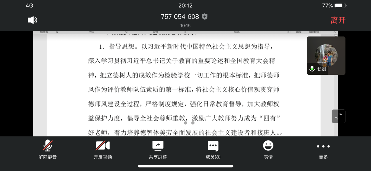 4月25日,教工第一党支部举行主题党日活动,在支部书记梁常建的主持下,全体党员共同学习研讨了学校《关于开展“牢记育人使命,志做‘四有’教师”师德主题教育活动的通知》文件精神和《关于加强和改进新时代师德师风建设的意见》文件精神。