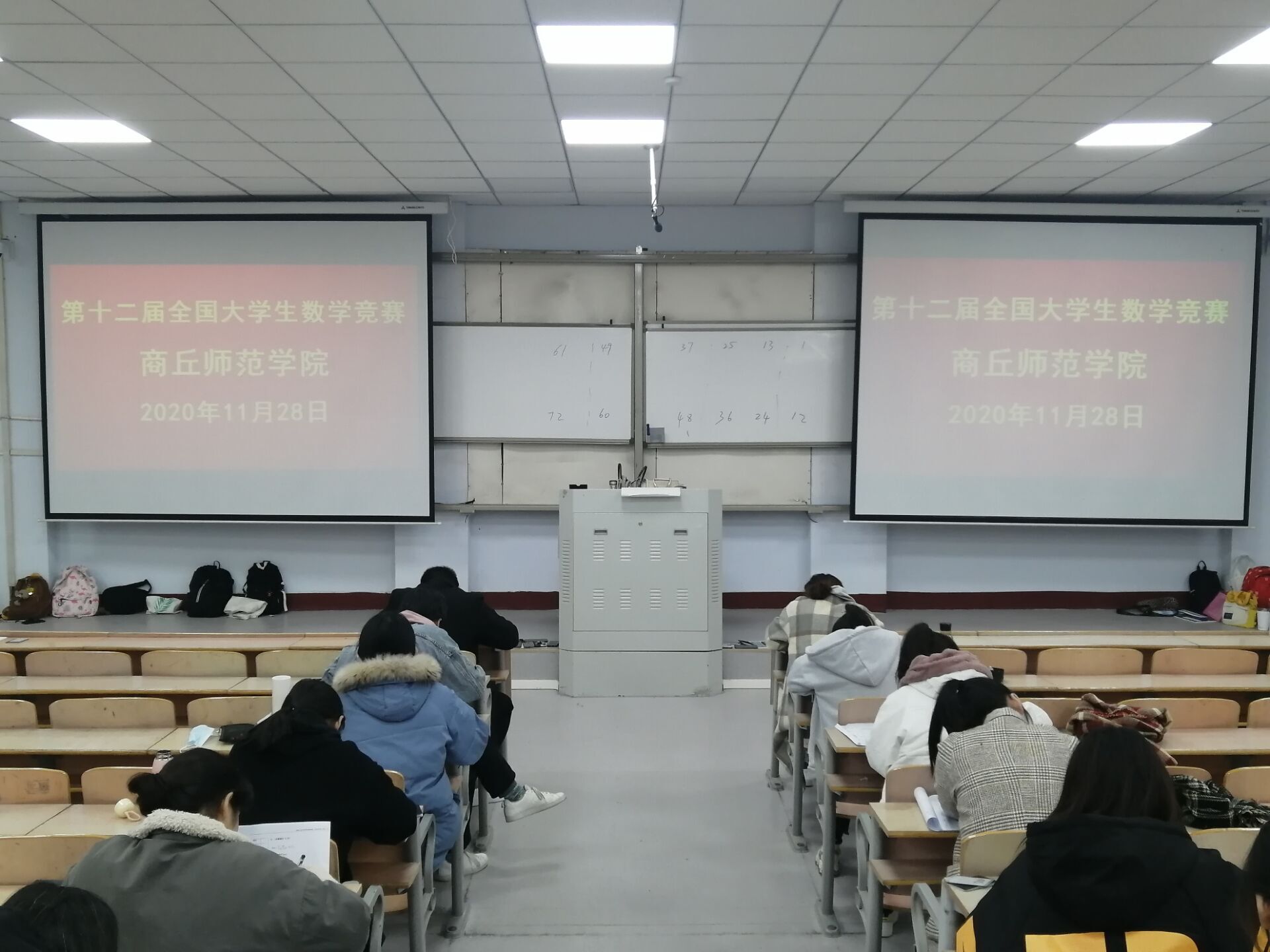 2020年11月28日上午9:00--11:30,由商丘师范学院教务处主办欧美一级婬片AA片免费组织承办的“第十二届全国大学生数学竞赛初赛”在睢阳校区1号楼106、107室如期举行。来自全校欧美一级婬片AA片免费、电子电气工程学院、信息技术学院、化学化工学院、测绘与规划学院,生物与食品学院的110名同学参加此次竞赛活动,本次活动旨在进一步提高学生对数学的学习兴趣、学习热情以及学生的综合素质,激发学生积极向上的乐观态度,丰富大学生活,同时也是为我校参加全国大学生数学竞赛决赛选拔种子选手。
