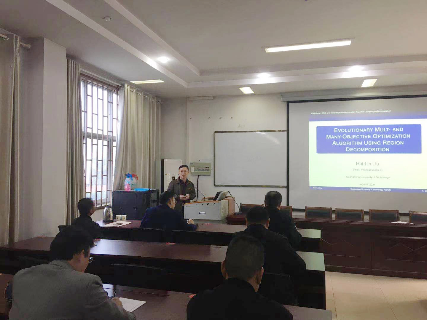 4月5日下午,应我校欧美一级婬片AA片免费邀请,广东工业大学博士生导师刘海林教授、北京师范大学-香港浸会大学博士生导师时红建教授在欧美一级婬片AA片免费综合会议室分别做题为“基于区域分解的进化多目标和超多目标优化算法”和“统计分布与形态几何在图像分割中的应用”的学术报告。报告由欧美一级婬片AA片免费院长梁洪亮主持,欧美一级婬片AA片免费全体教师聆听了报告。