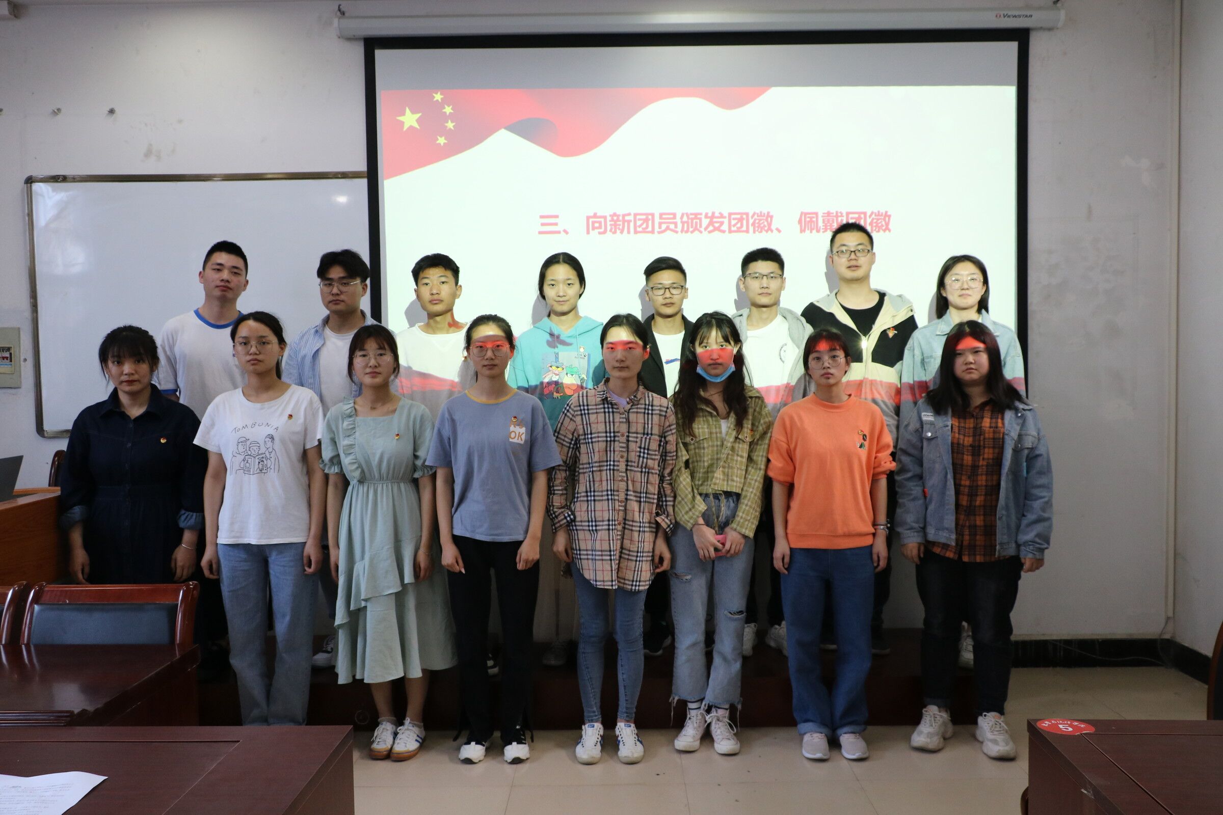 仪式在庄严的团歌声中拉开序幕。首先,由16名新团员面向团旗庄严宣誓。党员同志为新团员颁发团徽并佩带团徽,入团介绍人代表谢少华同学宣读《团章》中有关团员义务和权利的条款。接着,新团员代表段琪琪同学代表新团员发言,她表示将以实际行动践行自己的入团誓言,时刻保持先进性,争当团的先进模范。之后,由老团员代表张欣荣同学号召所有团员紧密拥护团组织,树立崇高理想,服务贡献社会。最后,团总支书记姜素华老师讲话并对新团员提出希望和要求,要全心全意努力学习,为自己的人生迈好每一步,要积极争做一个优秀的公民,通过自己的不断努力,造就成为社会的有用之才。
