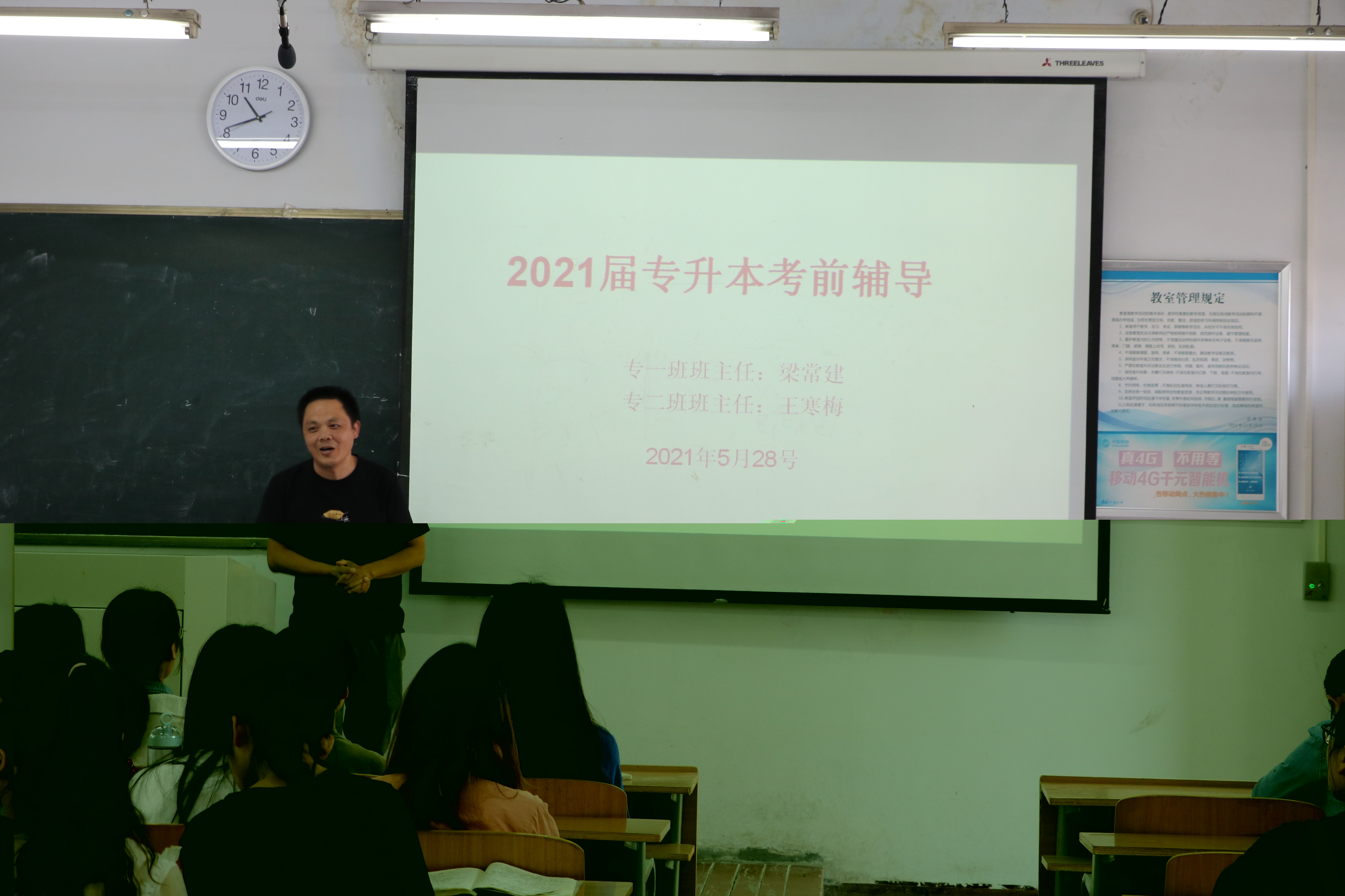 为加深学生对专升本考试的认识,助力专科学生实现升本梦,2021年5月28日上午10点30分,欧美一级婬片AA片免费在1号楼504教室召开了2021届专升本考试考前辅导会议,18级数学教育班班主任梁常建、王寒梅、辅导员李昊阳以及18数学教育班全体同学参加了此次会议。