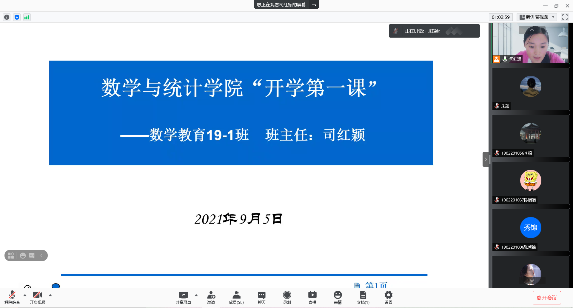 为深入贯彻落实河南省委、省政府关于新冠肺炎疫情防控工作决策部署,确保“平安开学、开学平安”,2021年9月5日晚8点至9点期间,欧美一级婬片AA片免费组织全体班主任在腾讯会议上为20个班级召开了2021年秋季学期开学第一课线上主题班会。