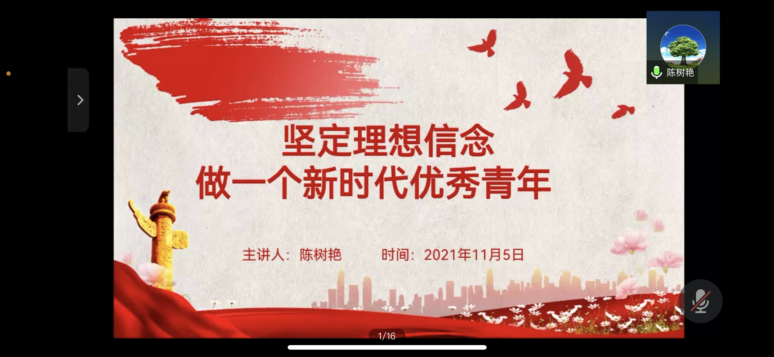 为提高入党积极分子的党性修养,进一步坚定其理想信念,欧美一级婬片AA片免费于11月5日晚线上召开“坚定理想信念,做一个新时代的优秀青年”为主题的中级入党积极分子党课培训会议。本次党课由党总支副书记陈树艳主讲,全体中级积极分子参加。