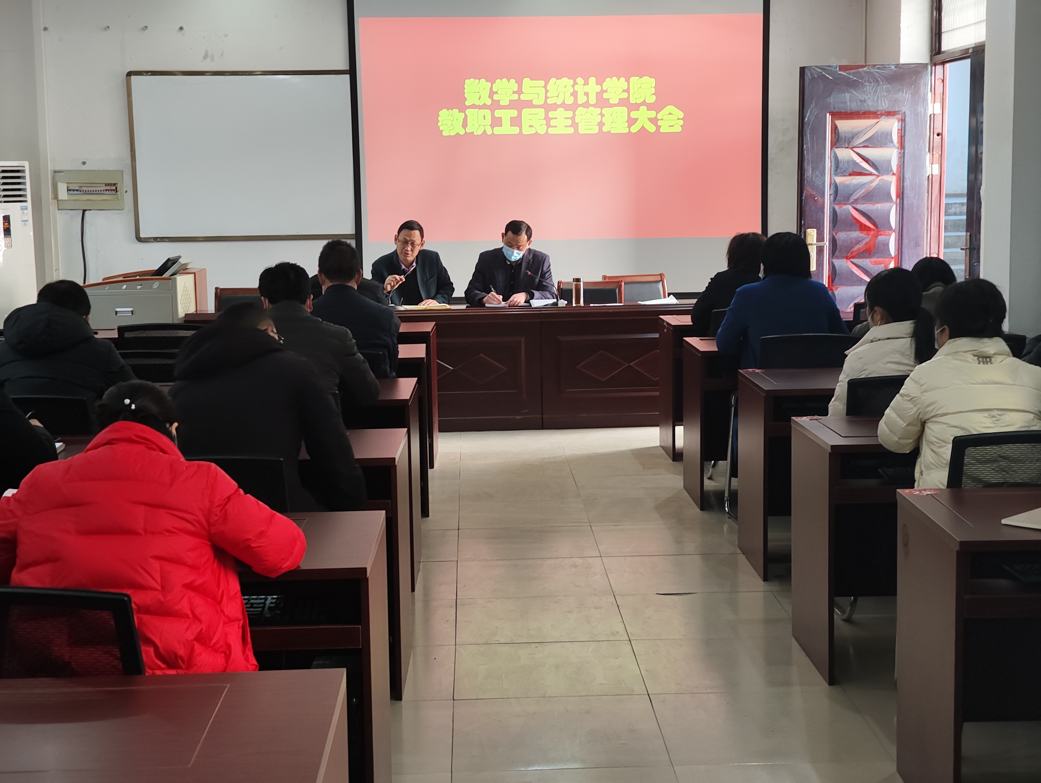 2021年12月17日,欧美一级婬片AA片免费在数学楼208会议室召开了教职工民主管理大会,学院领导班子、全体教职工参加了会议。会议由党委书记孟学超主持。
