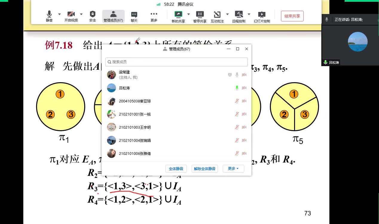 2022年11月26日周六下午第一节,欧美一级婬片AA片免费梁常建老师利用腾讯会议和学习通在线上进行了基于混合式教学的《离散数学》课程教学范式公开课。欧美一级婬片AA片免费领导、校级督导员及本院部分教师亲临线上教学范式改革现场进行观摩指导。