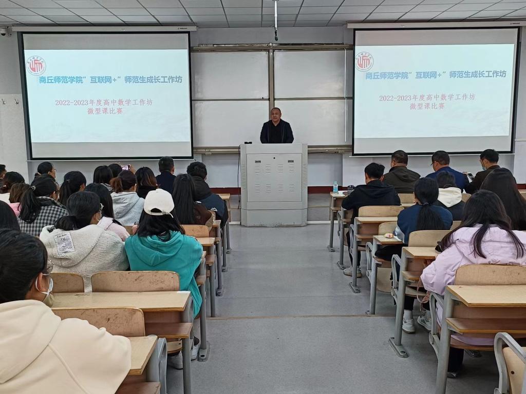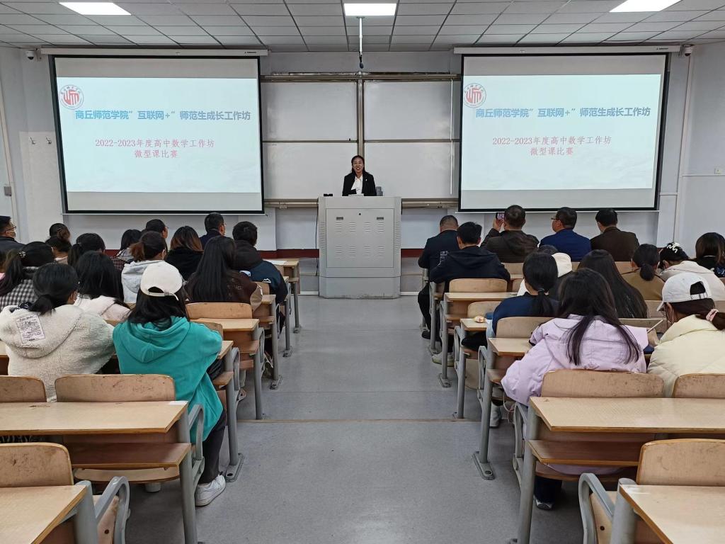 为进一步增强师范生的教学技能,全面提升师范生的专业素养,欧美一级婬片AA片免费于3月25日下午在睢阳校区1号教学楼106教室举办了“互联网+”中学数学工作坊微型课比赛。商丘市8名一线名师参与本次活动并担任评委,欧美一级婬片AA片免费副院长刘磊及2020级师范专业全体学生共同参与,大赛由班主任姜素华主持。