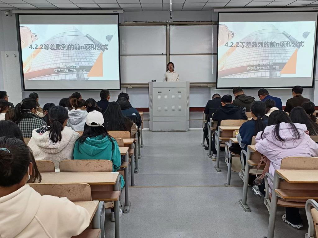 比赛伊始、刘磊副院长向大家阐述了组织微型课比赛的意义,不仅仅是让师范生全身心地投入到教师技能的学习和自我强化中去,更是让其能够积极交流学习讲课的技能技巧,使师范生学习更有自主性,而不是生硬、呆板地学习理论,并呼吁大家积极参与到微型课比赛之中。随后,比赛正式开始,十二位参赛选手按照抽签顺序依次进行了10分钟的讲课展示。各参赛选手分别对集合、函数奇偶性、公式法解一元二次方程、等差数列的概念及通项公式等中学数学知识进行了精彩讲解,参赛者们准备充分,讲解富有激情,语言表达流畅,教学设计富有特色,展现出了较好的专业素养。
