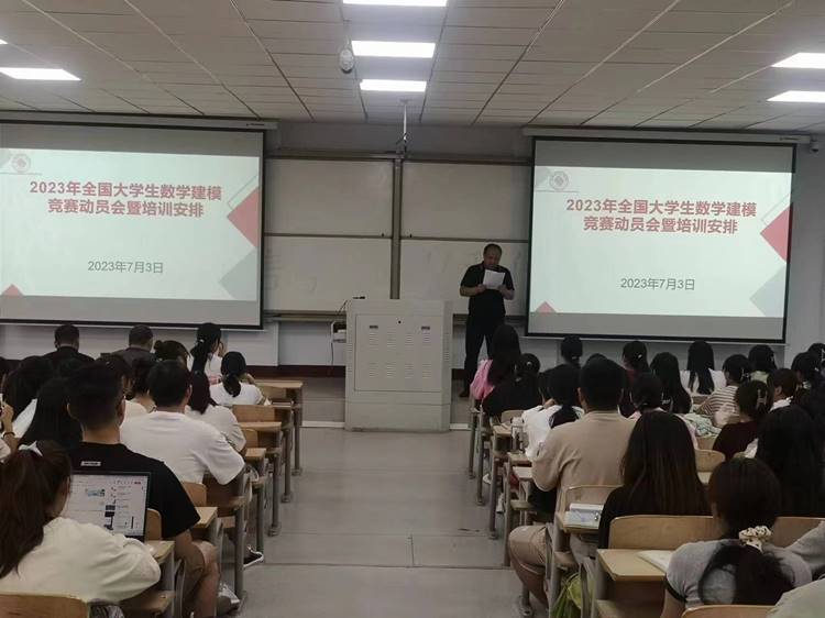 为培养我校学生创新能力和运用数学方法和计算机技术解决实际问题的能力,确保在2023年全国大学生数学建模大赛中取得优异成绩, 在学校统一领导下,及教务处和其他学院支持下,欧美一级婬片AA片免费组织数学建模指导教师有序开展数学建模竞赛暑期培训。7月3日上午八点,欧美一级婬片AA片免费于睢阳校区一号教学楼308教室举行数学建模暑期培训开班仪式,副院长刘磊、数学建模指导组的全体老师和我校190多名学生参加了开班仪式。