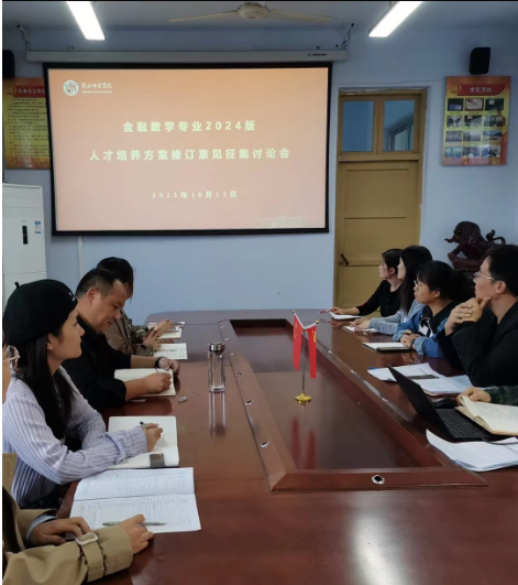 2023年10月13日下午,金融数学系在院办公楼204会议室开展金融数学专业2024版人才培养方案修订意见征集讨论会。此次会议由系主任孙寿文主持,系全体教师参加。