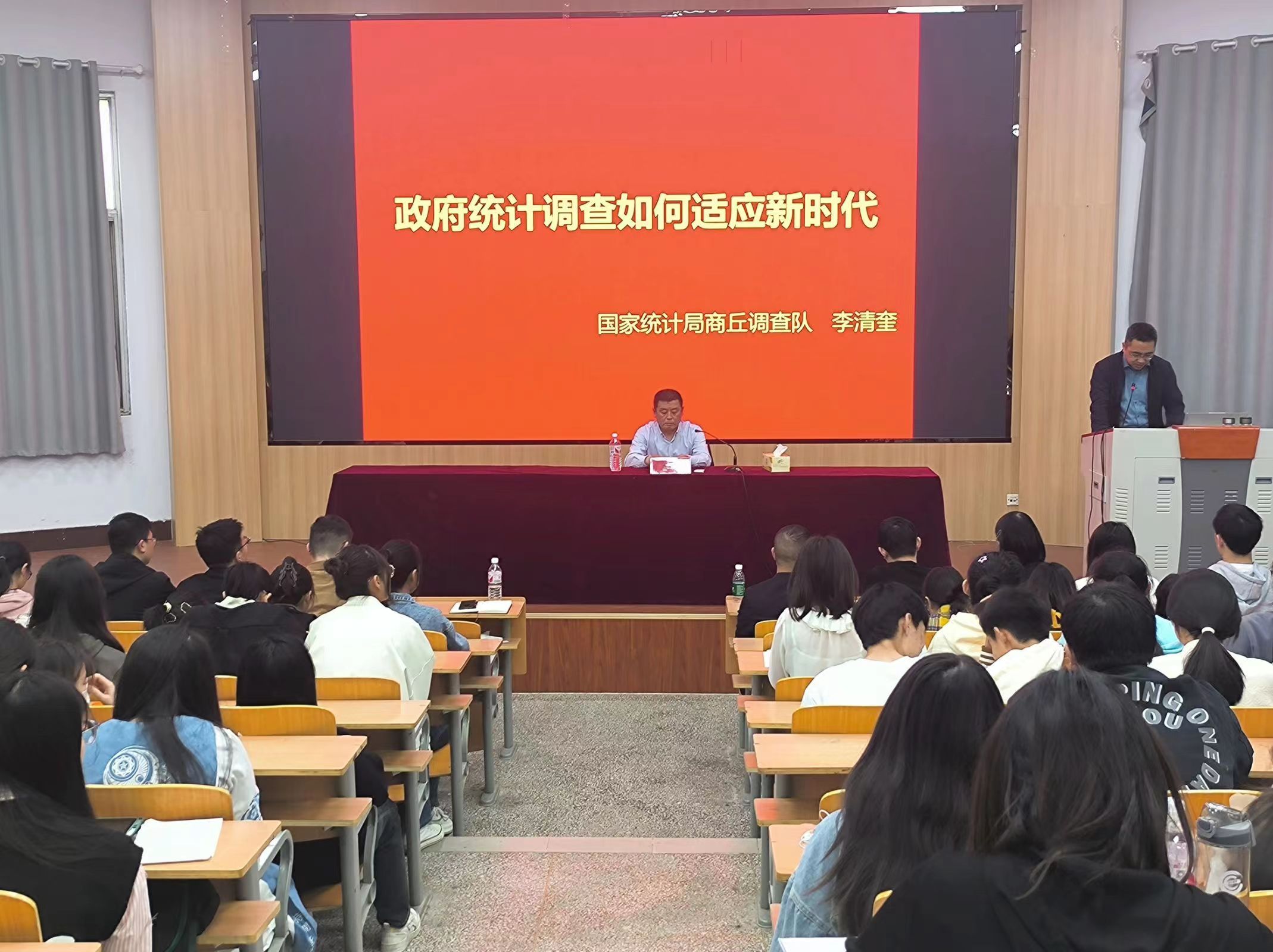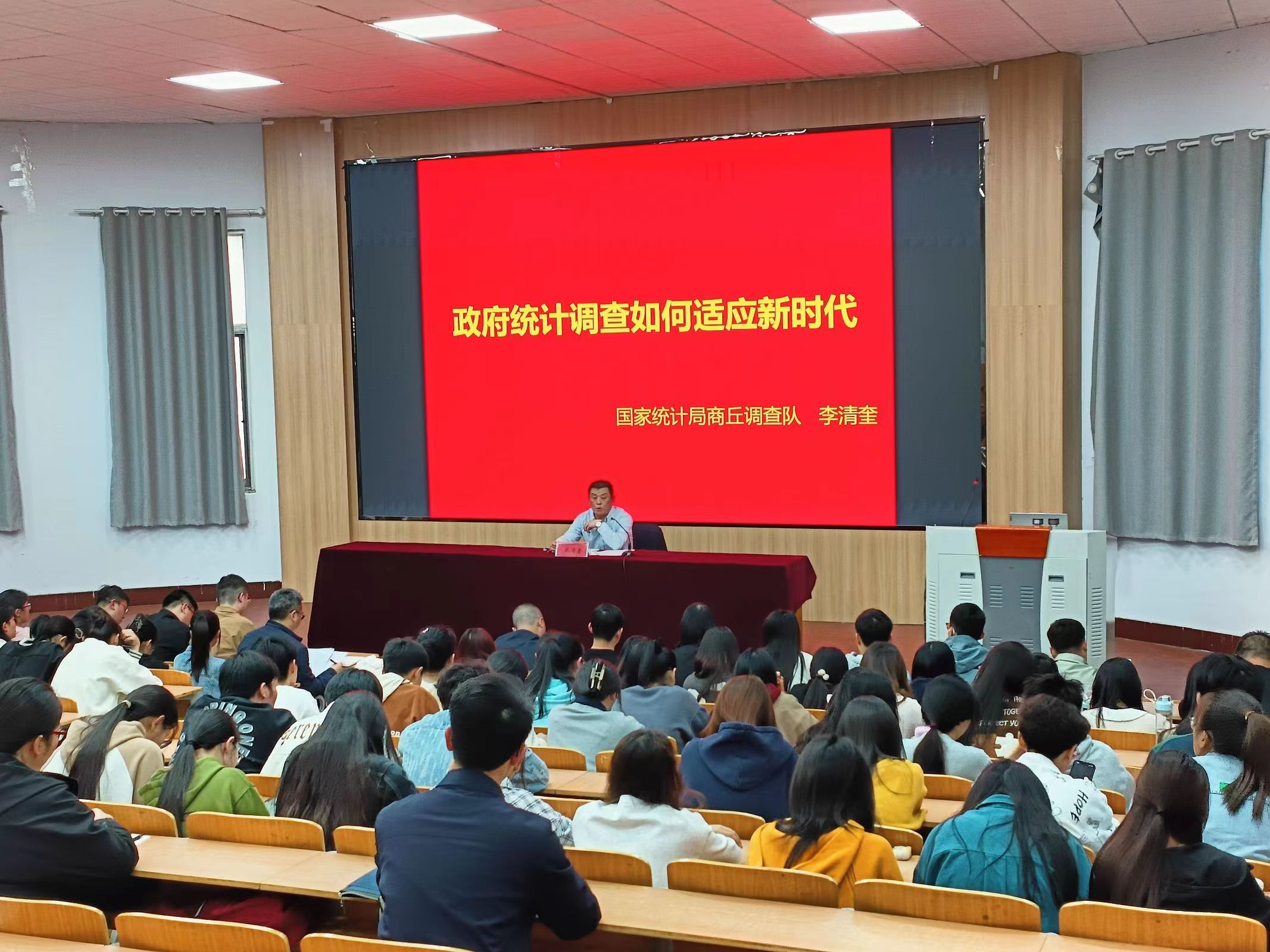 为了增进同学们对统计调查工作的了解,帮助他们毕业后更好地融入统计调查工作,应欧美一级婬片AA片免费邀请,国家统计局商丘调查队李清奎队长于4月9日下午14点40分在物理报告厅开展了《政府统计调查如何适应新时代》讲座,讲座由欧美一级婬片AA片免费副院长任磊主持,21级和23级全体统计学专业学生参加了讲座。