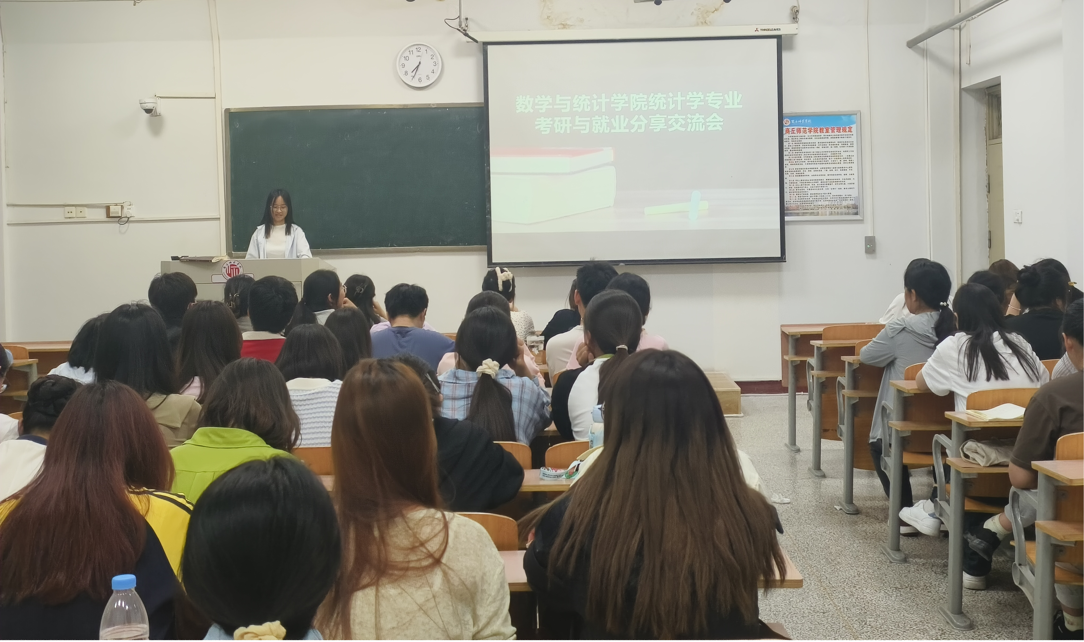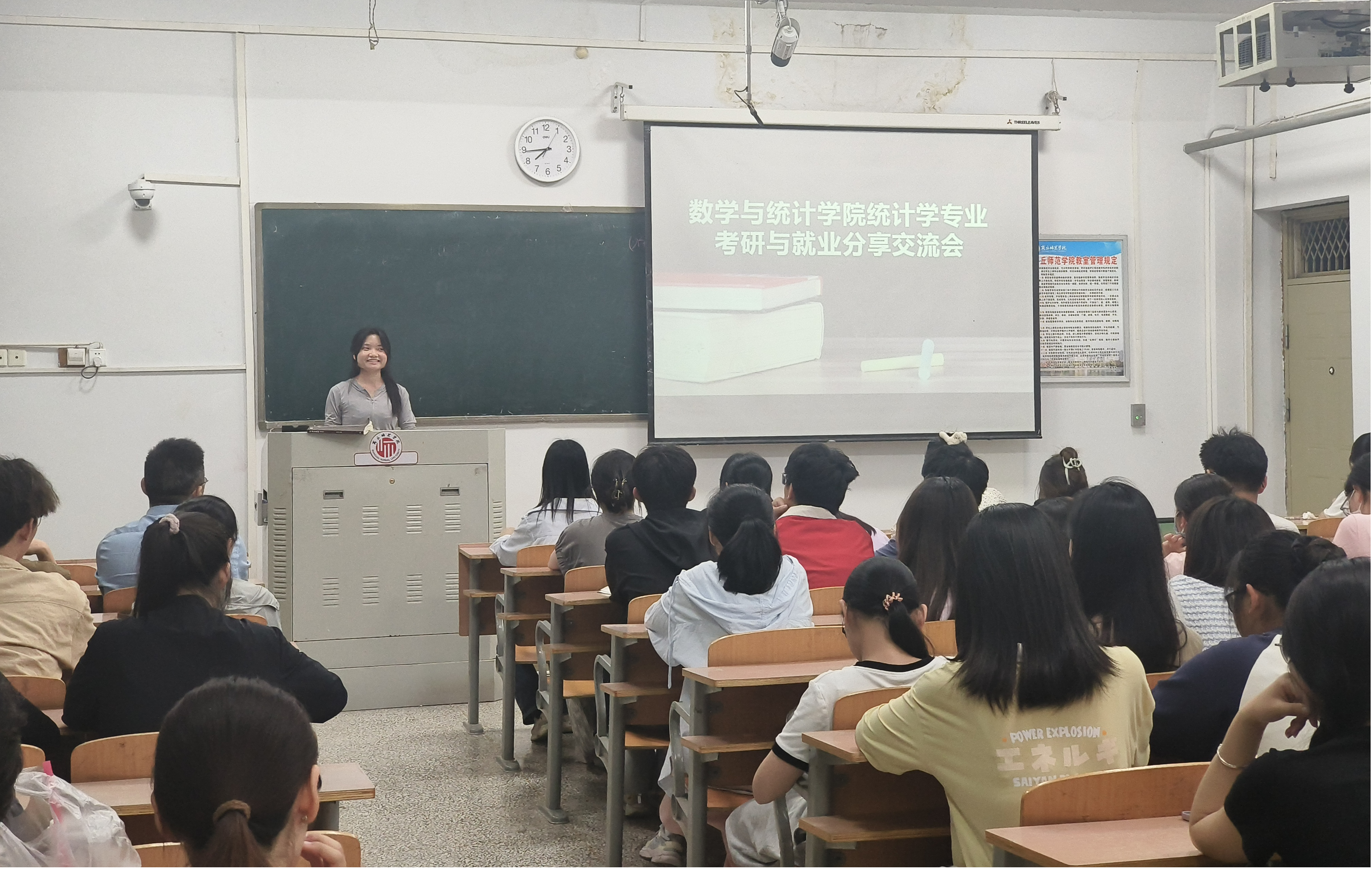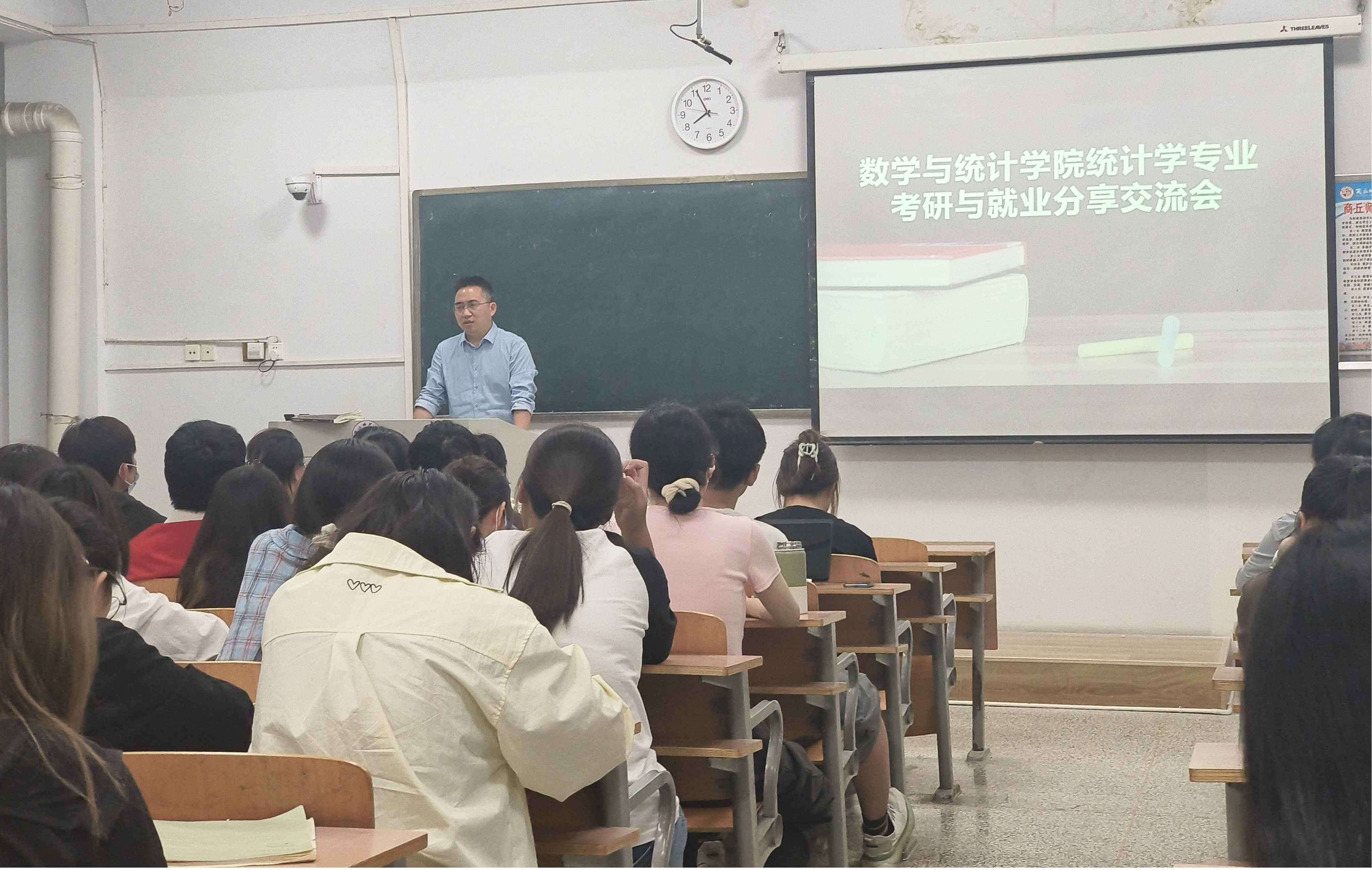 分享会上,吴颖分享了自身考研经历,提出备战考研要及早树立目标院校,不断加强专业知识学习,夯实数学基础,提升政治和英语学习能力。同时,她强调考研是一场持久战,心态在一定程度上决定了考研的成败,并鼓励同学们勇于面对困难和挫折,及时疏解不良情绪。针对就业,严厉华同学主要从就业准备、简历制作两方面进行分享,她鼓励同学们积极参加数学建模大赛、统计建模大赛等专业性较强的竞赛活动,并利用寒暑假进行专业实习,不断提升专业实践能力,丰富自身简历,以提升自身在就业市场的核心竞争力。