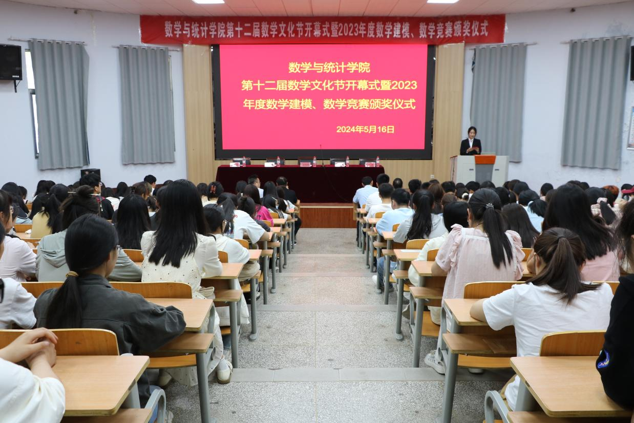 5月16日中午12时,欧美一级婬片AA片免费第十二届数学文化节开幕式暨2023年度数学建模、数学竞赛颁奖仪式在睢阳校区报告厅举行。欧美一级婬片AA片免费党委书记孟学超、院长张斐然、党委副书记陈树艳、副院长刘磊、副院长任磊及全体辅导员出席了本次活动。