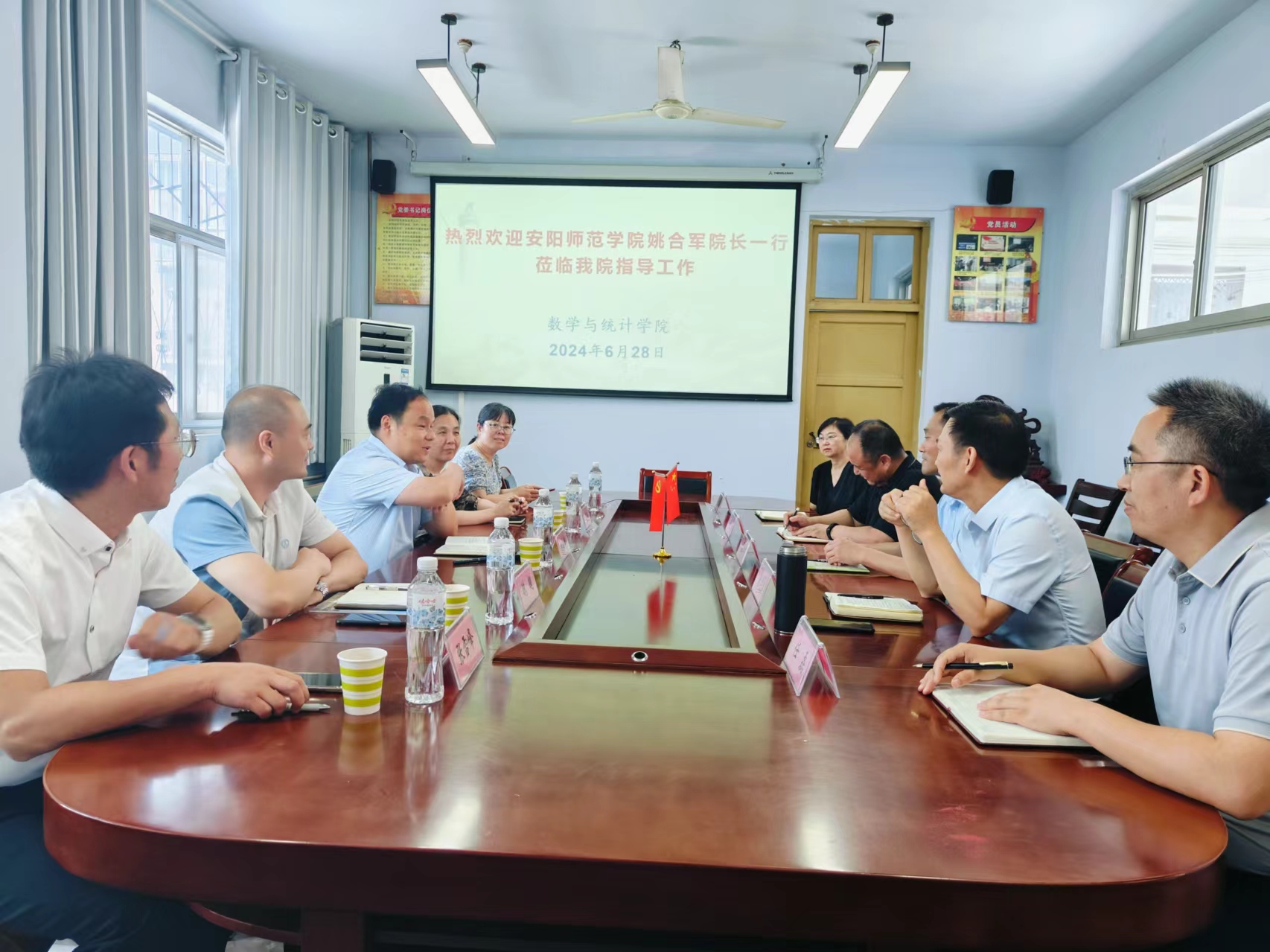 6月28日下午,安阳师范学院欧美一级婬片AA片免费姚合军院长一行5人来我院进行调研交流。学院党政班子成员及相关负责人热情接待了姚合军一行,院长张斐然主持会议。