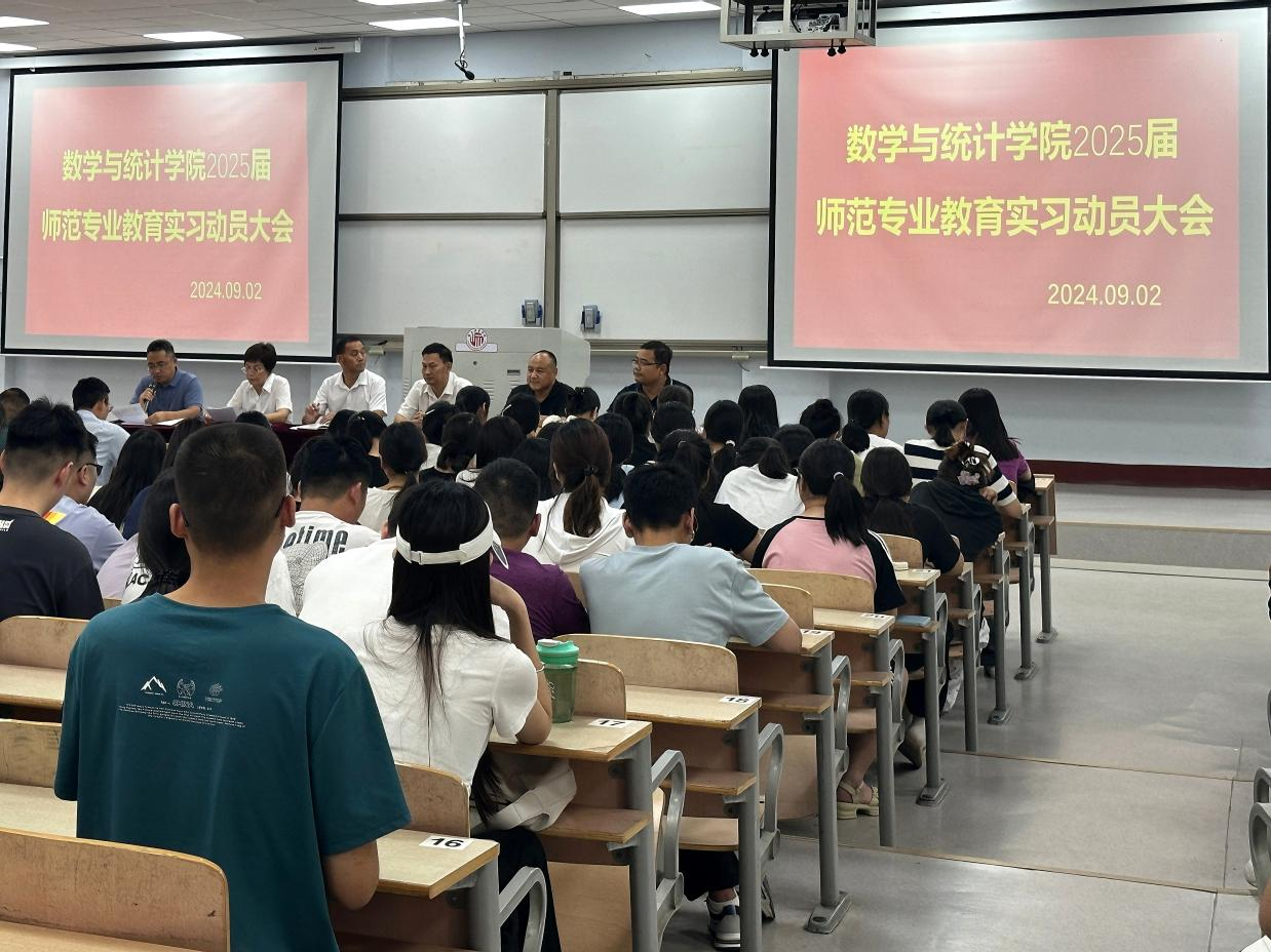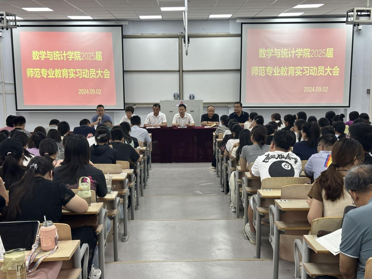 为了帮助同学们更好地了解教育实习工作,确保实习工作顺利开展,欧美一级婬片AA片免费于9月2日下午三点在一号楼107教室组织召开了2025届师范专业教育实习动员大会。本次动员大会由欧美一级婬片AA片免费党委副书记陈树艳主持,党委书记孟学超、院长张斐然、副院长刘磊、副院长任磊、商丘市第一高级中学数学老师王威以及21级数学与应用数学专业全体学生参加。