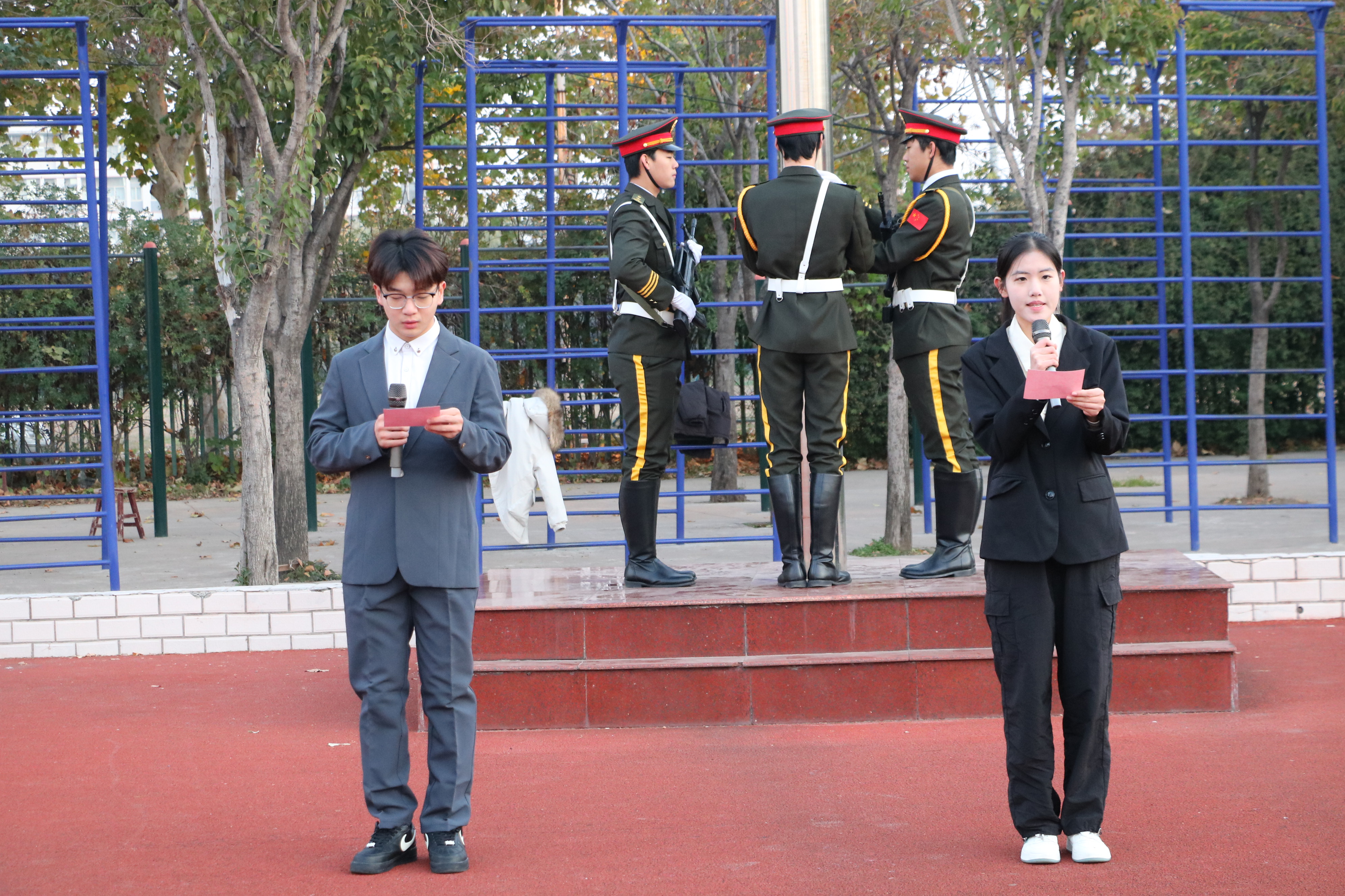 随后,学生代表李佳骏和孙曼芳以饱满的热情、昂首的姿态进行了国旗下的朗诵——《党徽下的青春,宪法中的力量》。最后,程致远同学呼吁同学们积极学习宪法知识,增强宪法意识,在青春岁月里坚定理想信念,以实际行动践行对党的忠诚和对宪法的尊重。