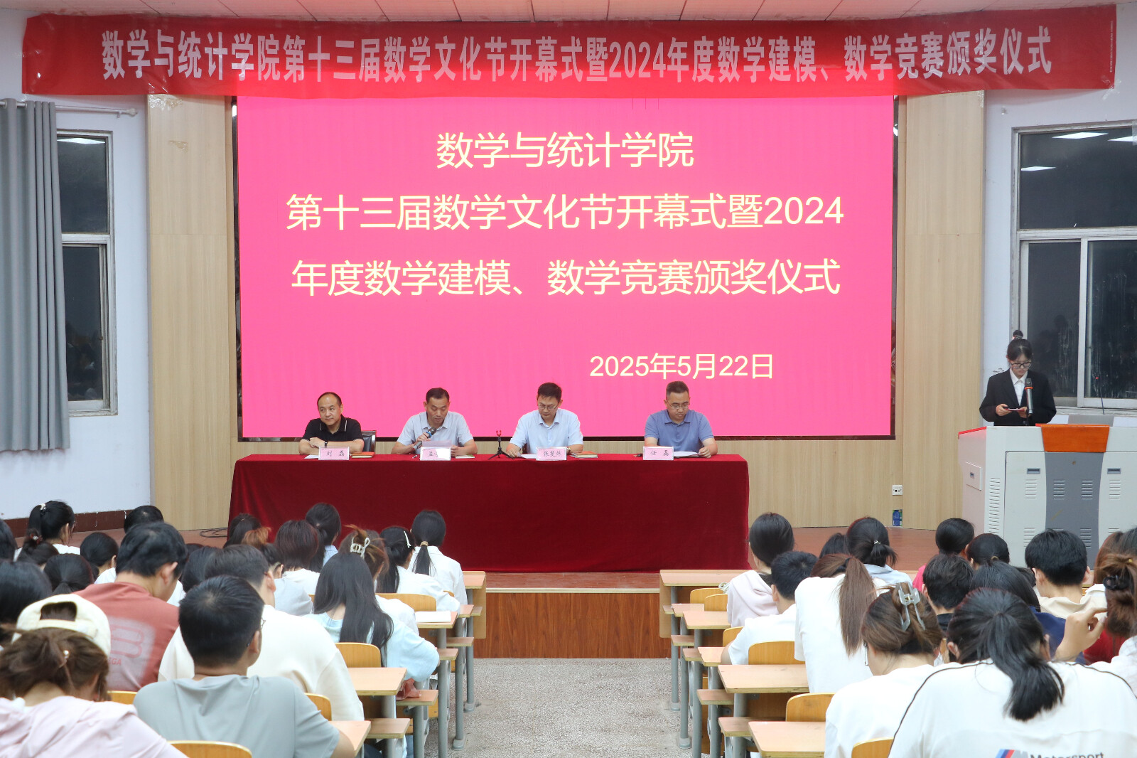5月22日下午,欧美一级婬片AA片免费第十三届数学文化节开幕式暨2024年数学建模和数学竞赛表彰大会在睢阳校区物理报告厅举办。学院党委书记孟学超、院长张斐然、副院长刘磊、任磊及全体辅导员出席本次活动,获奖同学及22级、23级学生代表参加。