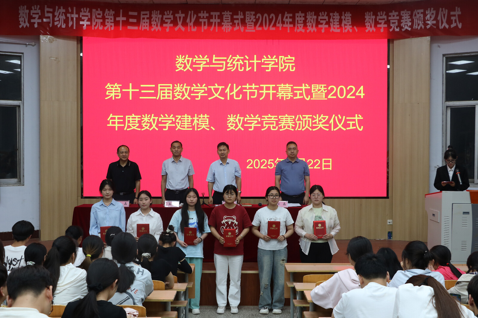 随后,张斐然院长宣布本届数学文化节正式启动。张院长回顾了2024年度全国大学生数学建模竞赛、数学竞赛的筹备、赛前培训及获奖情况,鼓励同学们积极参与数学建模竞赛和数学竞赛,并对获奖学生表示祝贺,鼓励同学们继续在数学领域探索创新。随后,学院领导依次宣读了获奖人员名单,并为获奖者送上祝贺。