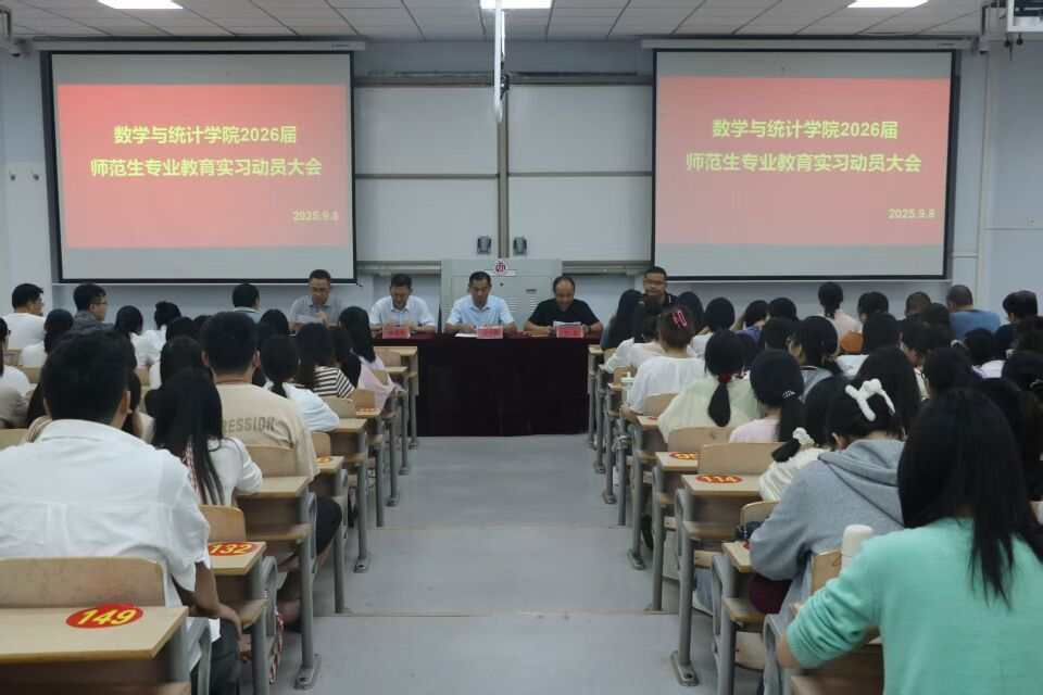 为精准部署2026届师范专业教育实习工作,帮助学生更好地了解教育实习工作,确保实习工作顺利开展,欧美一级婬片AA片免费于9月8日下午3点在一号教学楼106教室召开了2026届师范专业教育实习动员大会。本次动员大会由副院长任磊主持,党委书记孟学超、院长张斐然、副院长刘磊、商丘市第一高级中学教师王威,全体指导老师以及2022级数学与应用数学专业全体学生参加。