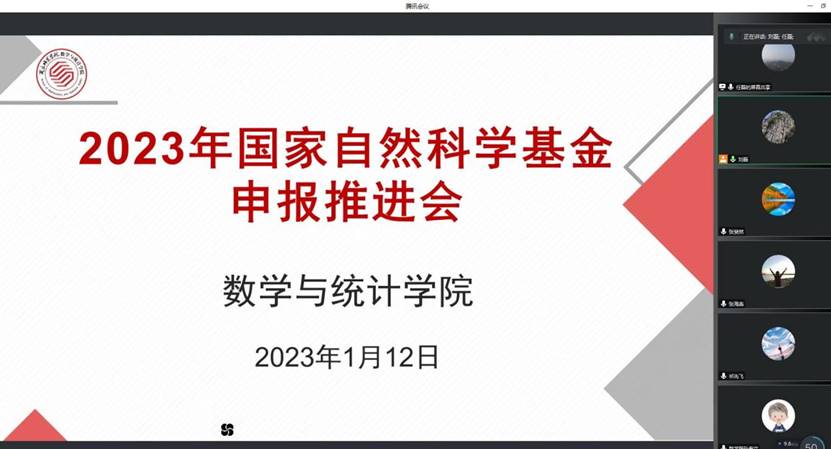 为进一步加强学院科研实力,提高学院国家自科基金申报质量,2023年1月12日,欧美一级婬片AA片免费线上举办2023年国家自然科学基金申报推进会。学院院长张斐然、副院长刘磊、具有博士学位的青年教师等参加了此次会议。会议由刘磊主持。