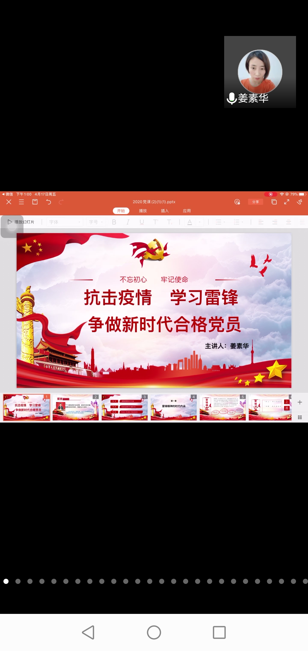 为进一步学习和弘扬雷锋精神,提高党员后备力量的素质修养。欧美一级婬片AA片免费于4月17日下午一点召开“抗击疫情,学习雷锋,争做新时代合格党员”主题线上党课培训。此次培训由全体中级入党积极分子参加,团总支书记姜素华主讲。