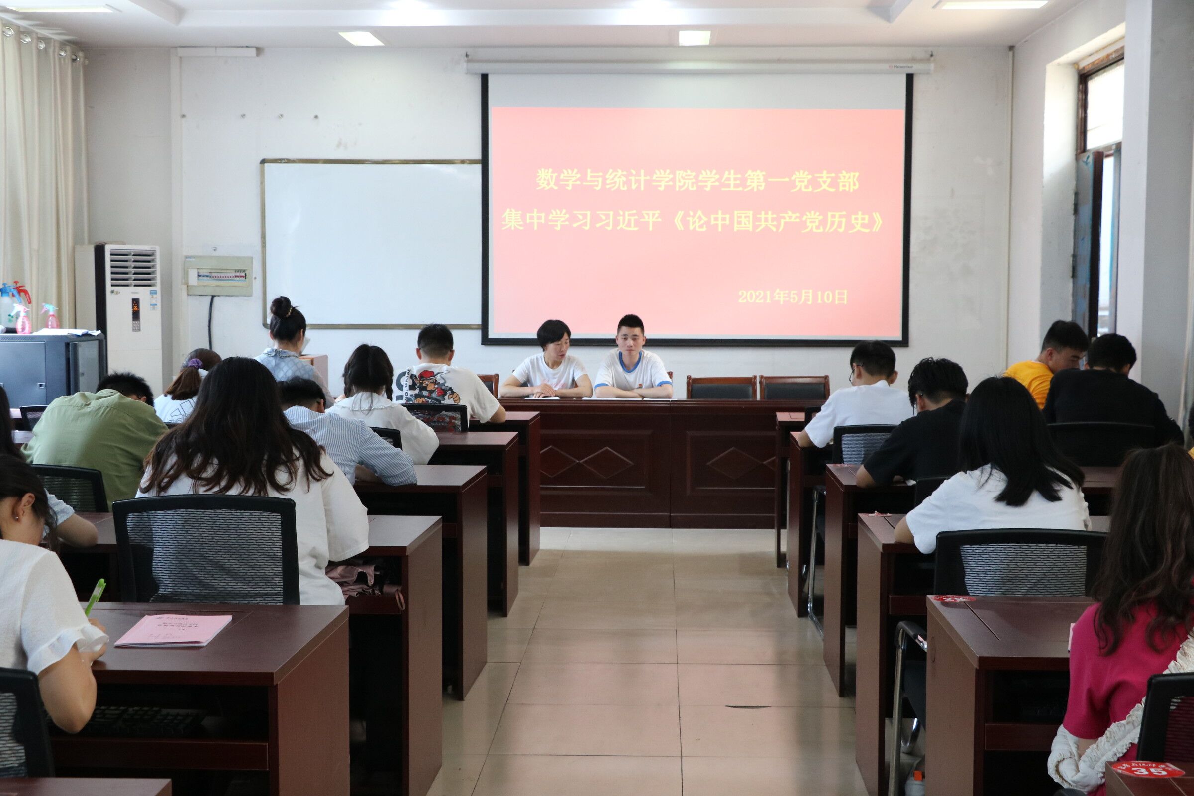 2021年5月10日十二点半欧美一级婬片AA片免费学生第一党支部在数学办公楼208开展了集中学习习近平《论中国共产党历史》的主题党日活动。本次活动由学生第一党支部书记姜素华主持,欧美一级婬片AA片免费学生第一党支部全体党员参加。