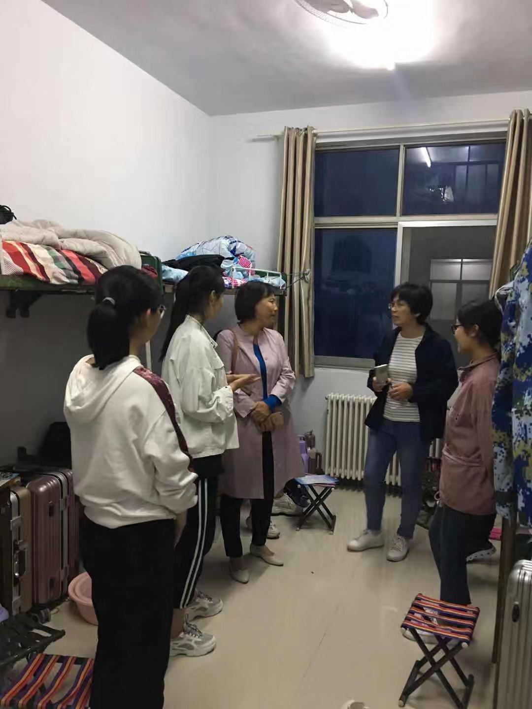 陈树艳副书记带队来到女生宿舍进行慰问,陈书记与19级新生们进行了亲切的交流,对新生及家长的到来表示欢迎。希望大家能够尽快熟悉环境,互相帮助,奋进拼搏,并提醒新生们要强化安全意识,谨防校园贷和电信诈骗等不法行为,遇到困难要及时和辅导员老师交流沟通。