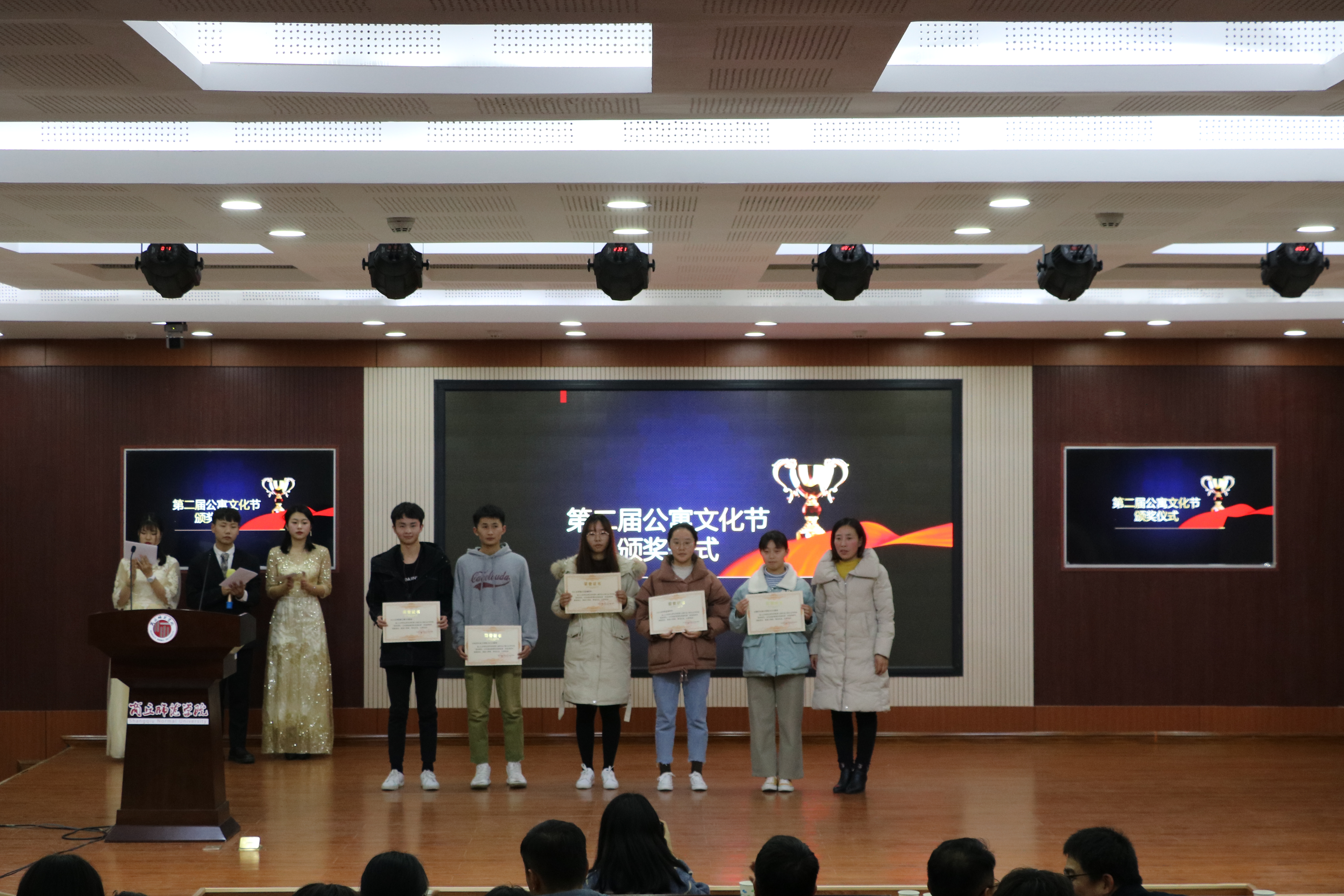 为提高宿舍学习生活质量,丰富宿舍日常文化生活,促进校园文明基础建设,营造更加安全文明,整洁舒适的宿舍环境。欧美一级婬片AA片免费于12月13日晚上七点在梁园校区三商楼145参加了第二届公寓文化节颁奖仪式。参加颁奖仪式的有欧美一级婬片AA片免费团总支书记姜素华和获奖宿舍代表。
