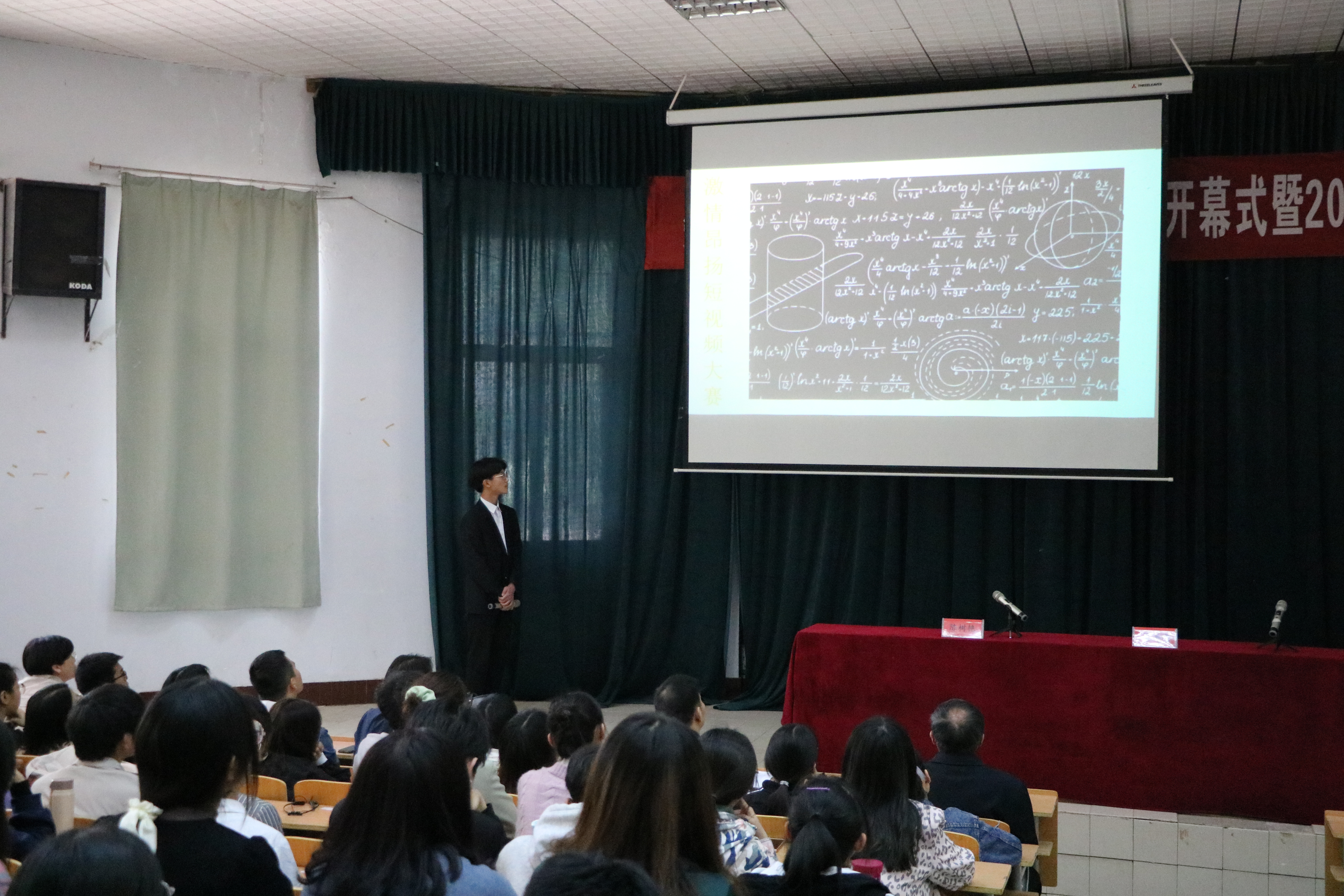 本次活动分为开幕式和颁奖典礼两个环节。开幕式第一项议程,由党总支副书记陈树艳对第九届数学文化节开幕致辞,陈书记指出数学是理工学科的基础,数学文化节面向全校,旨在让更多的同学体验数学的实践妙用,拓展数学知识,领会数学之美,将数学与生活紧密联系起来。开幕式第二项议程,由学习纪检部同学介绍往届数学文化节的举办情况,并对本届活动的规模、参与人数、活动内容等进行了详细的介绍。伴随着阵阵掌声,梁洪亮院长宣布第九届数学文化节开幕。