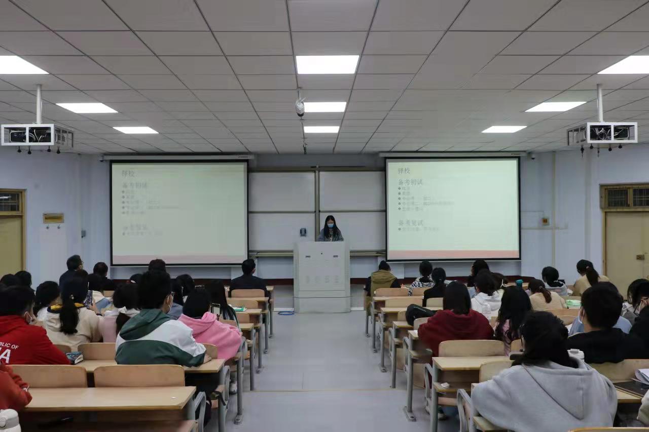 会议伊始,孟书记从考研的发展形势和就业现状两个方面强调了考研的重要性。随后,张院长指出在考研择校过程中要正确评估自身实力,做到扬长避短。紧接着,由2018级四位考研上岸的优秀学子结合个人考研经历,综合考研的重要时间节点、如何择校、考研信心的树立以及考试科目的选择和复试等方面的一些心得分享给参会同学。会议最后,由任磊老师进行考研动员,他指出考研不仅是对学历的提升,更能开阔眼界、增加机遇,接着还帮同学们系统分析了统计学考研的相关方向和注意事项,并预祝大家能够考研成功。