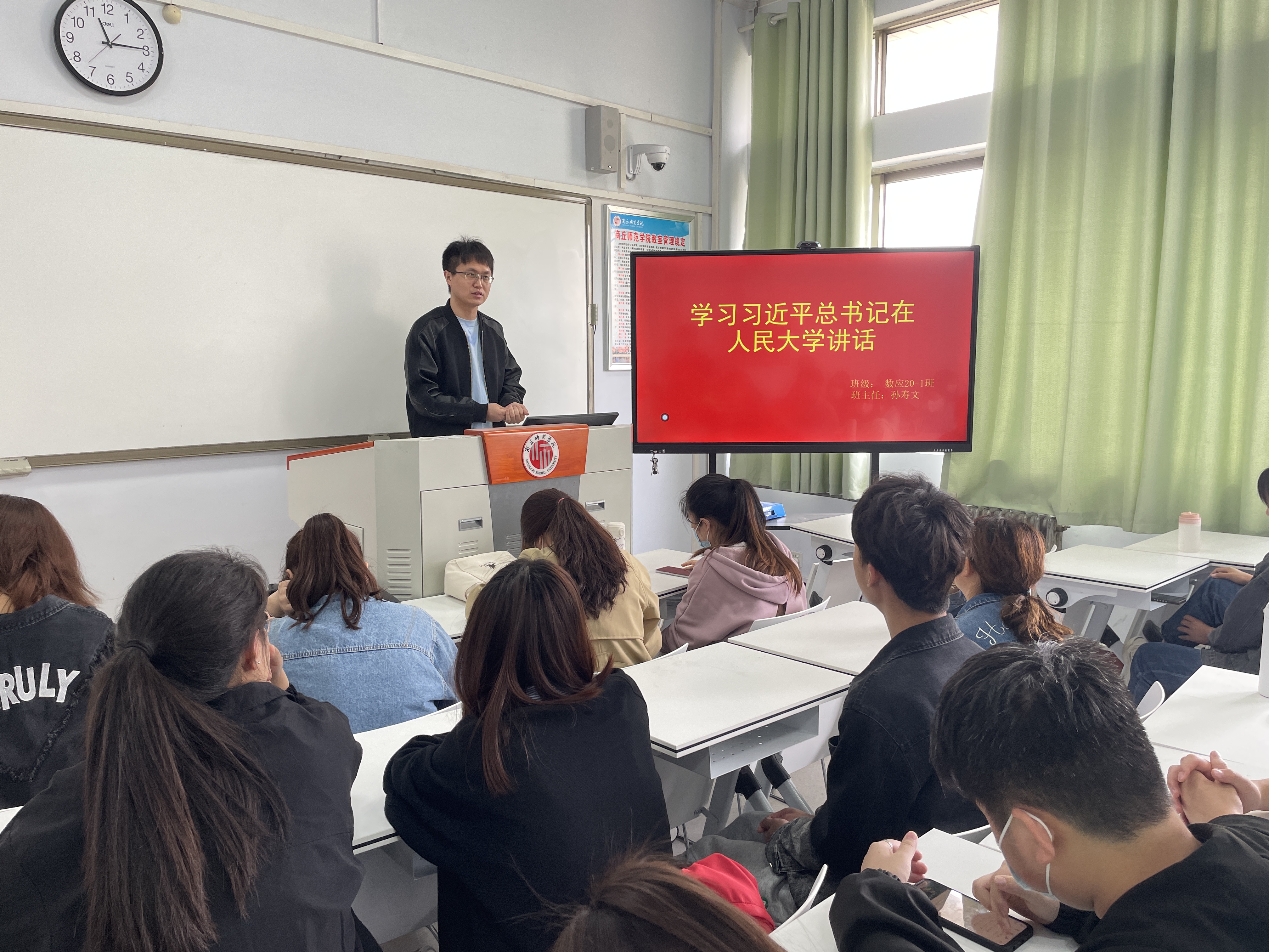 习近平总书记考察调研中国人民大学在我院学生中引发热烈反响,学生代表们在主题班会上结合自身发展谈感受表决心,表示一定要牢记党的教诲,立志民族复兴,不负时代,展现出当代青年学子的责任与担当。