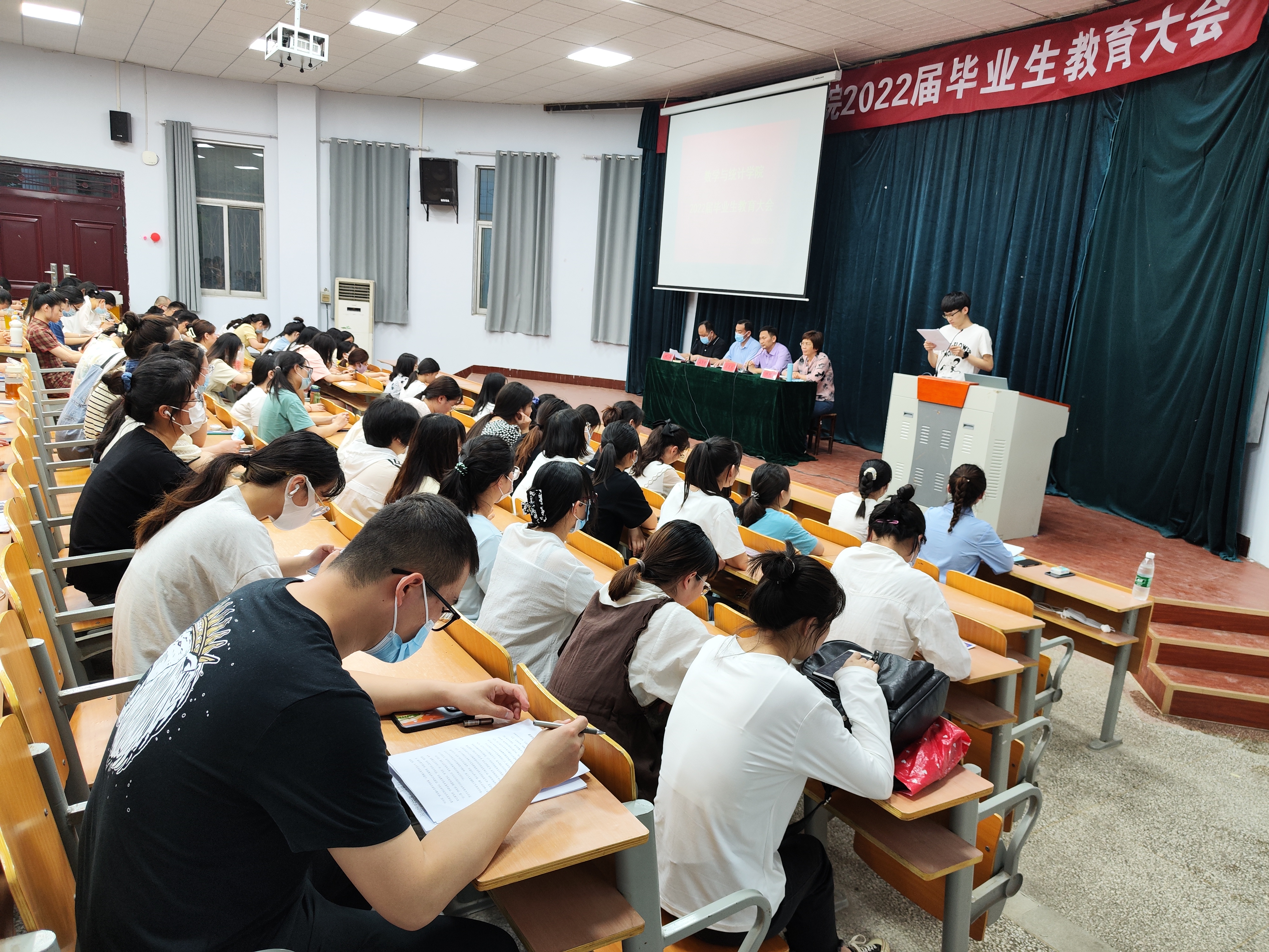 毕业生教育大会是我院毕业生工作中的一个重要环节,下一阶段我院将围绕学院毕业生教育方案做好毕业生离校教育工作,确保毕业生安全、文明、和谐离校。希望各位毕业生在未来的学习与工作中能够秉承“应天归德,智圆行方”的校训精神,以积极乐观的心态书写人生华丽篇章。