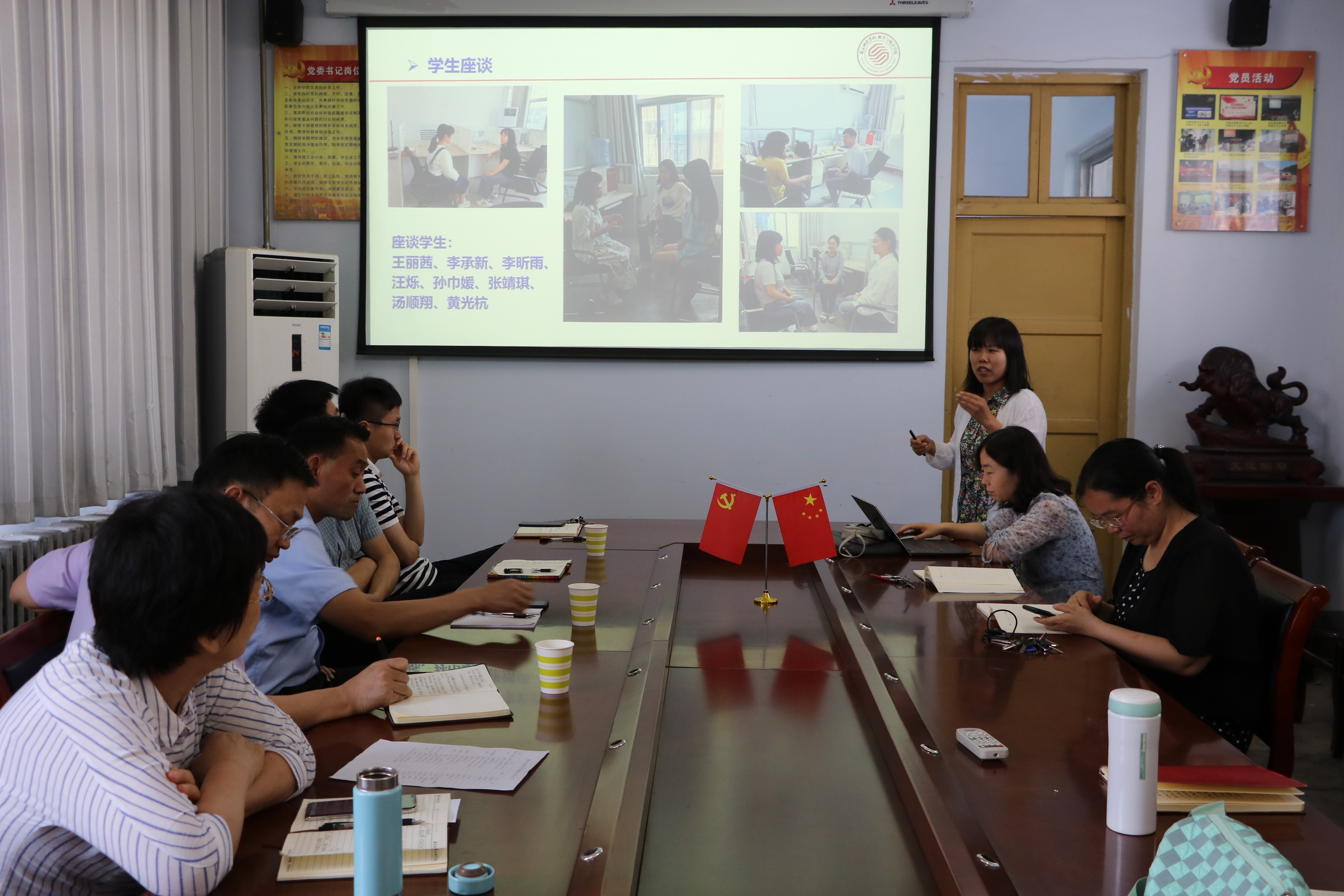 陈树艳副书记重点传达了学校学风建设研讨会上郭文佳副校长的讲话精神,对辅导员、班主任一个月以来的工作,进行了充分的肯定。针对各位老师在班级工作中存在的不足之处提出了相应的解决方法,结合“三学三走四进”活动对下一阶段学风建设工作进行了具体安排与部署。