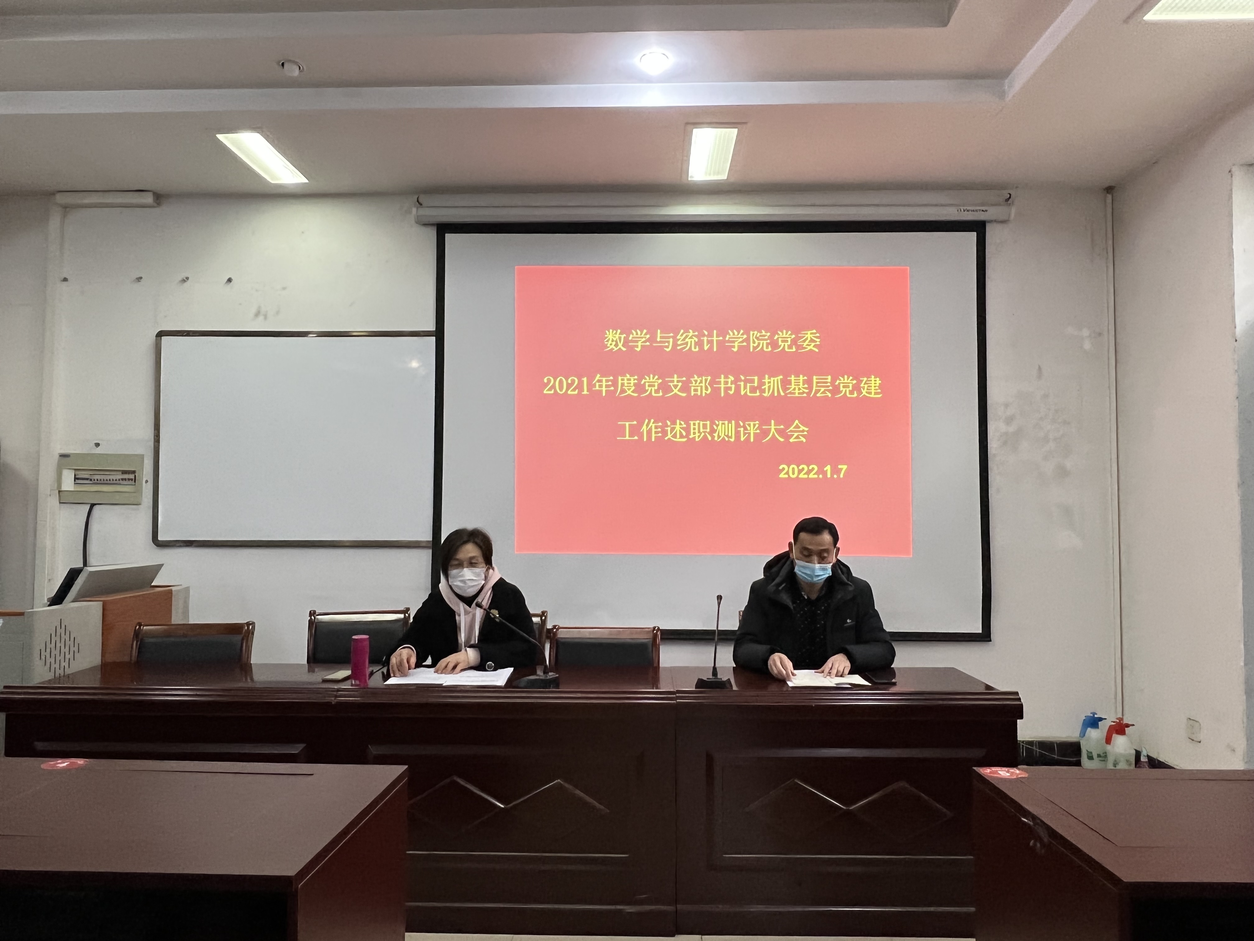2022年1月7日上午,欧美一级婬片AA片免费党委在数学楼208会议室召开了2021年度党支部书记抓基层党建工作述职测评大会,学院党委委员、师生党支部书记参加了此次会议,会议由党委副书记陈树艳主持。