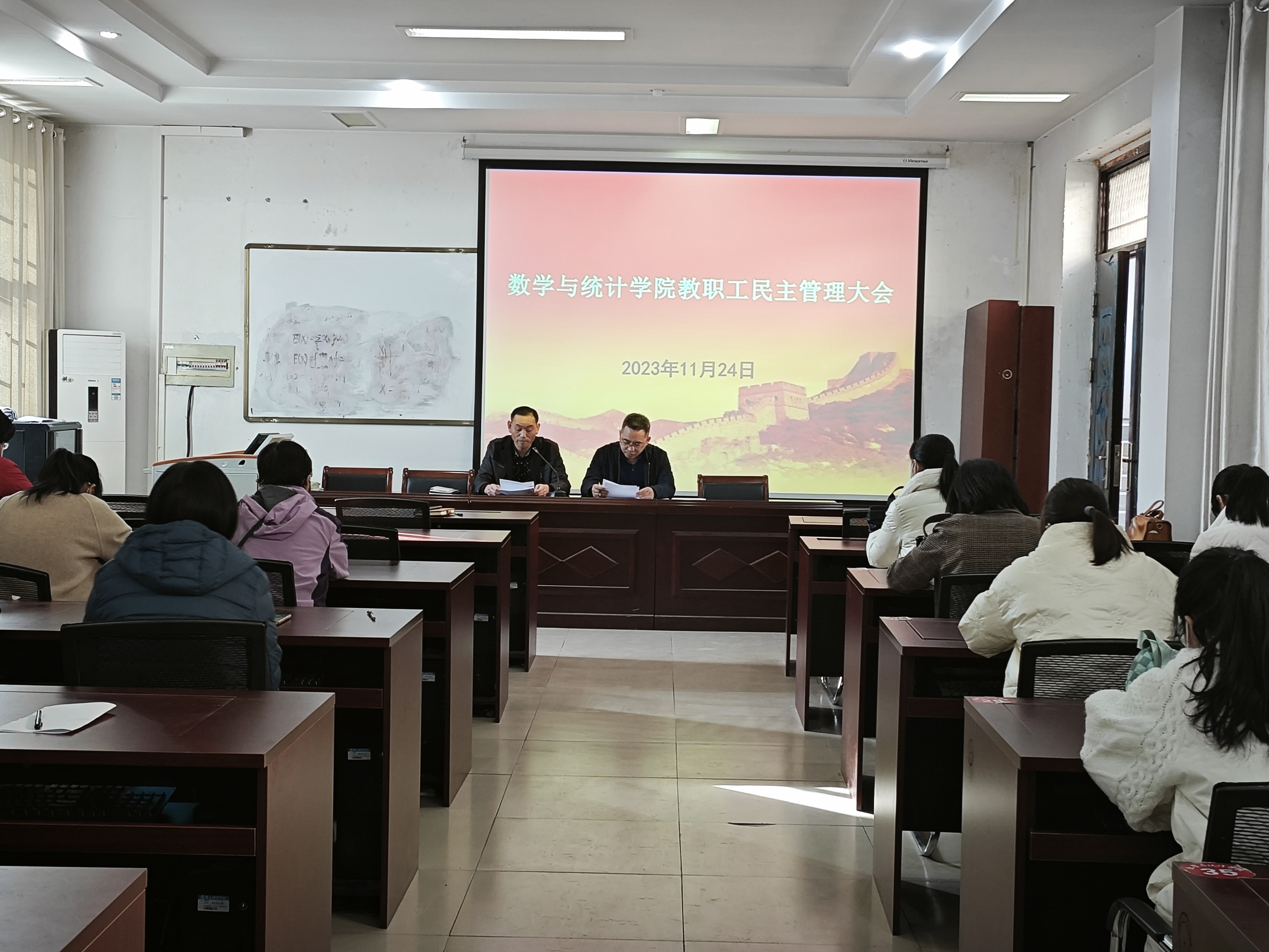 为进一步加强民主政治建设,不断调动教职工参与民主决策、民主管理和民主监督的积极性,11月24日下午,欧美一级婬片AA片免费在数学楼208会议室召开了教职工民主管理大会。学院全体教职工参加了会议,会议由学院党委书记兼工会主席孟学超主持。