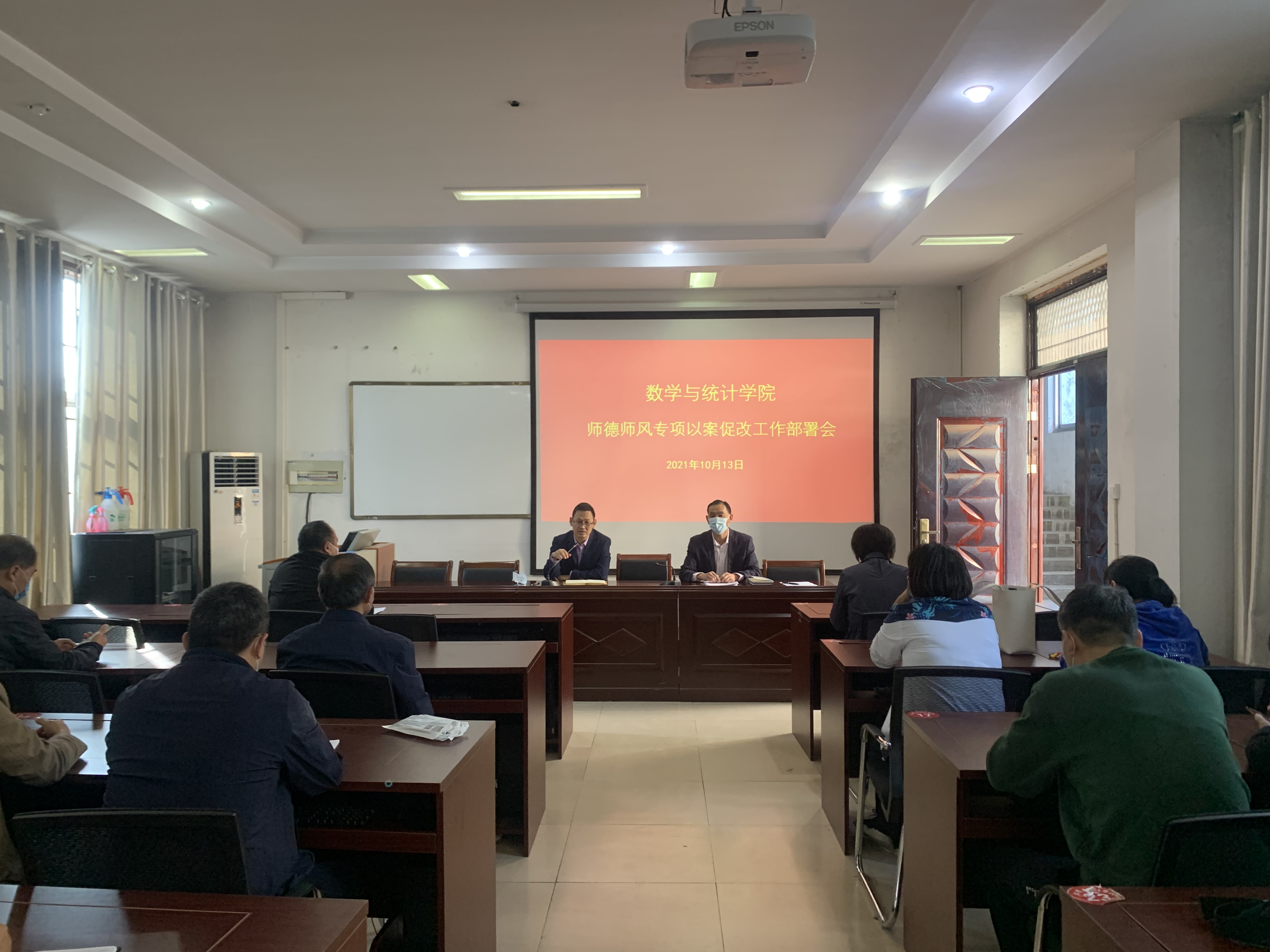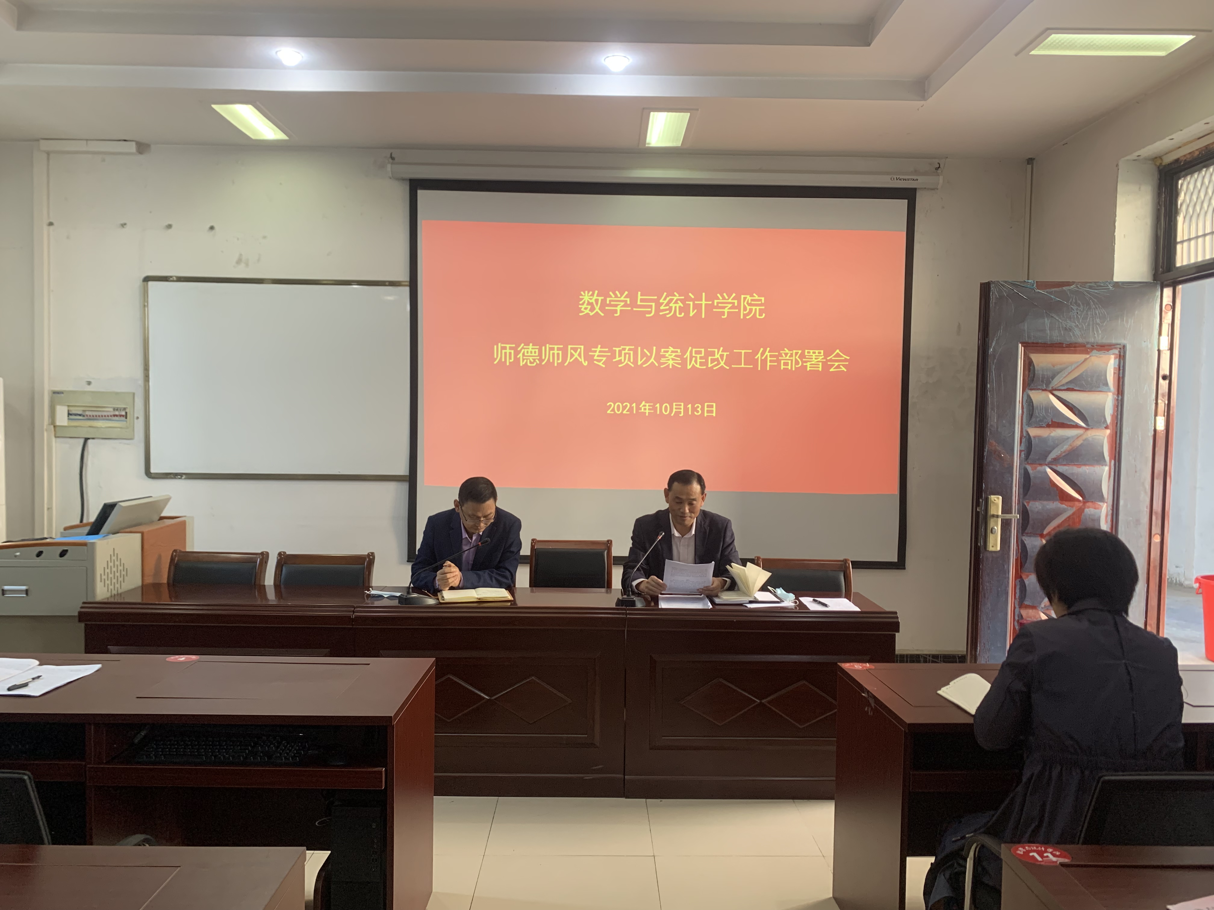 为全面加强师德师风建设,引导广大教师以德立身、以德立学、以德施教、以德立德,2021年10月13日,欧美一级婬片AA片免费召开师德师风专项以案促改工作部署会,学院领导班子、全体教职工在数学楼二楼会议室参加了此次会议,会议由院长张斐然主持。