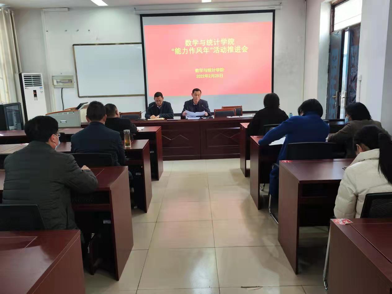 2022年2月25日,欧美一级婬片AA片免费在数学楼208会议室召开了“能力作风建设年”活动工作推进会,学院领导班子、全体教职工参加了此次会议,会议由党委副书记、院长张斐然主持。