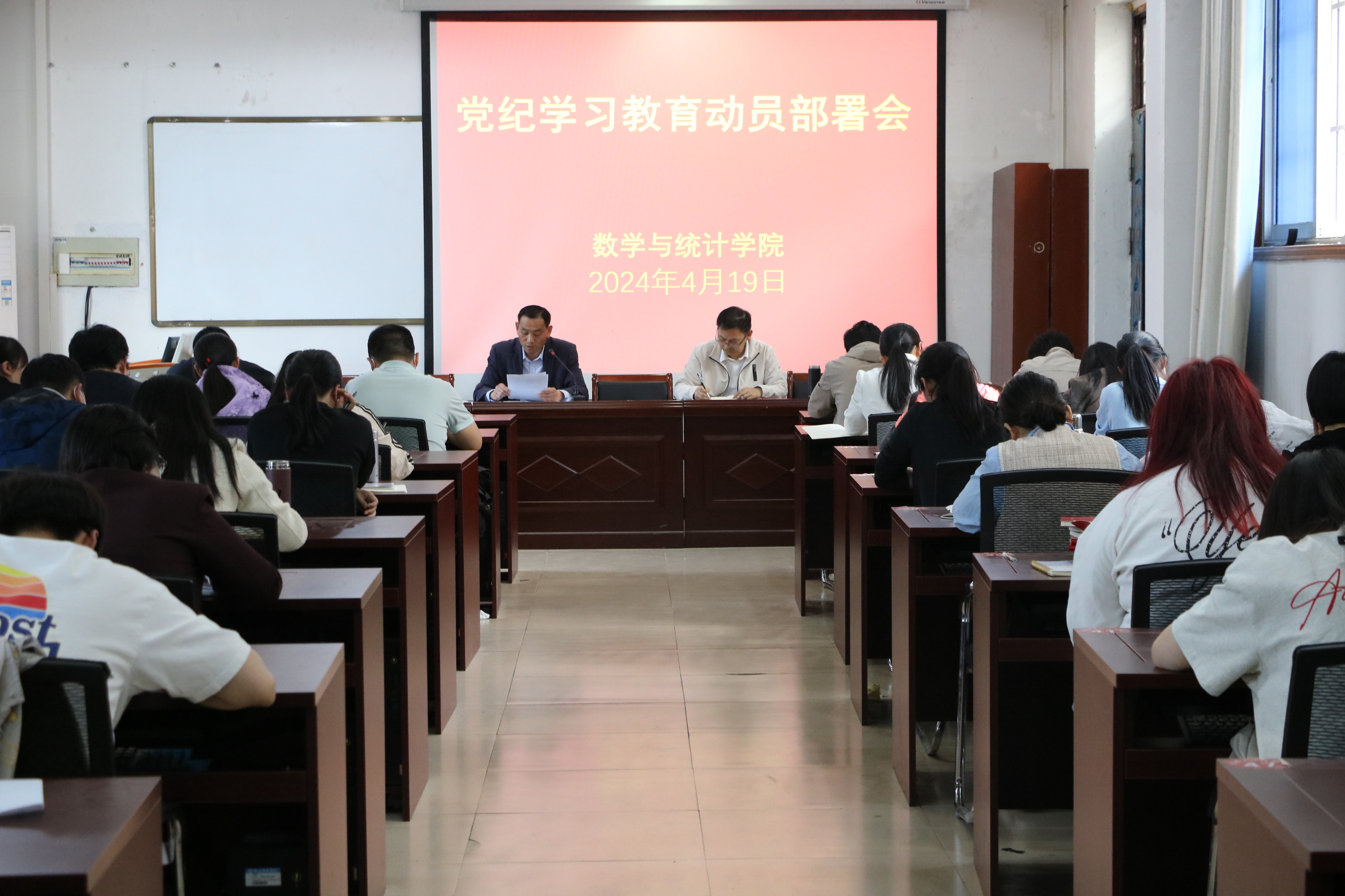 4月19日,欧美一级婬片AA片免费在数学楼208会议室召开党纪学习教育动员部署会,学院党员委员、全体师生党员参加了会议,会议由学院党委书记孟学超主持。