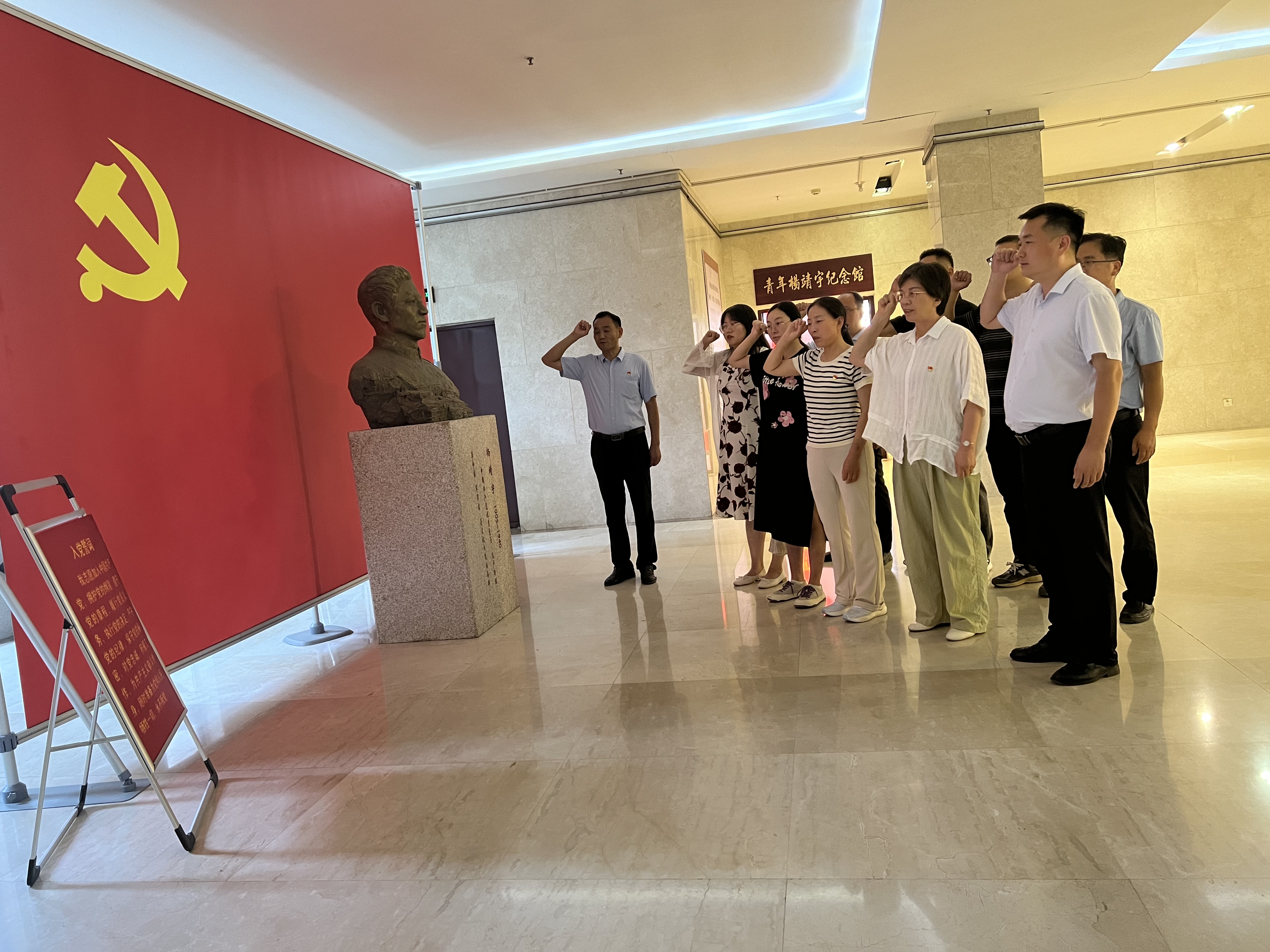 为弘扬靖宇精神,传承红色基因,2024年6月25日下午,学院党委书记孟学超、副书记陈树艳带领教工党支部党员前往河南工程学院信息与网络管理中心党支部联合开展青年杨靖宇纪念馆参观交流暨重温入党誓词主题党日活动,活动由信息与网络管理中心党支部书记马小雨主持。