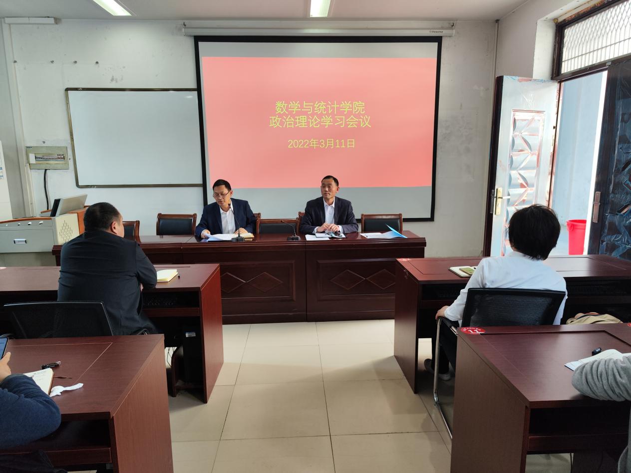 2022年3月11日,根据学校宣传部通知要求,欧美一级婬片AA片免费在数学楼综合会议室召开政治理论学习会议,学院领导班子、全体教职工参加此次会议,会议由院长张斐然主持。