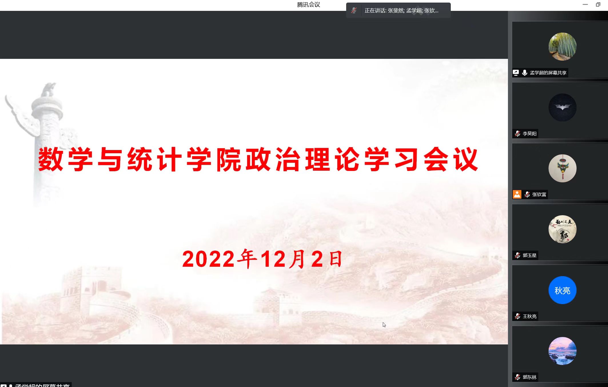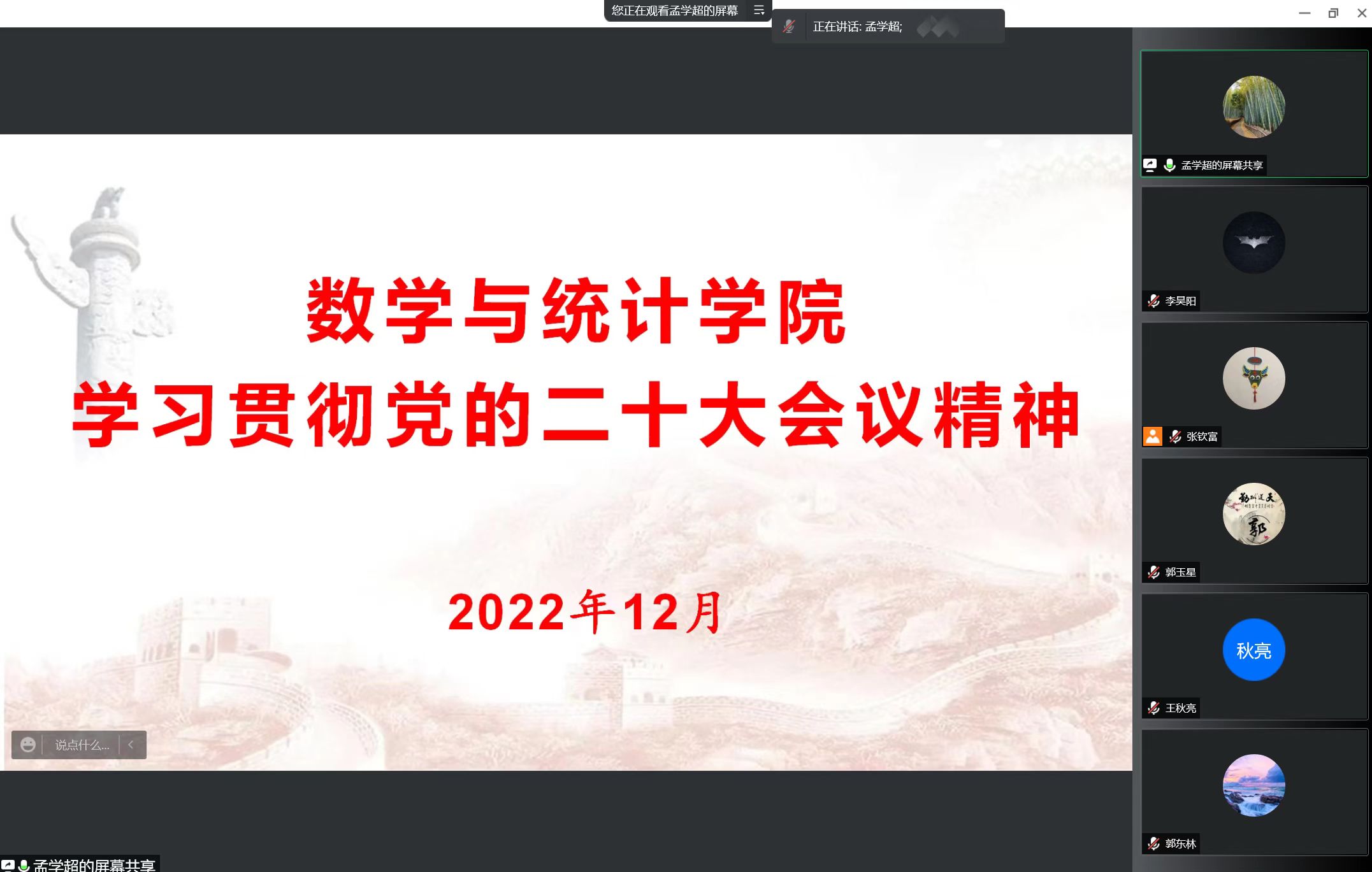 2022年12月2日,欧美一级婬片AA片免费召开全体教职工政治理论学习会议,学院领导班子、全体教职工通过腾讯会议在线上参加了此次会议,会议由院长张斐然主持。