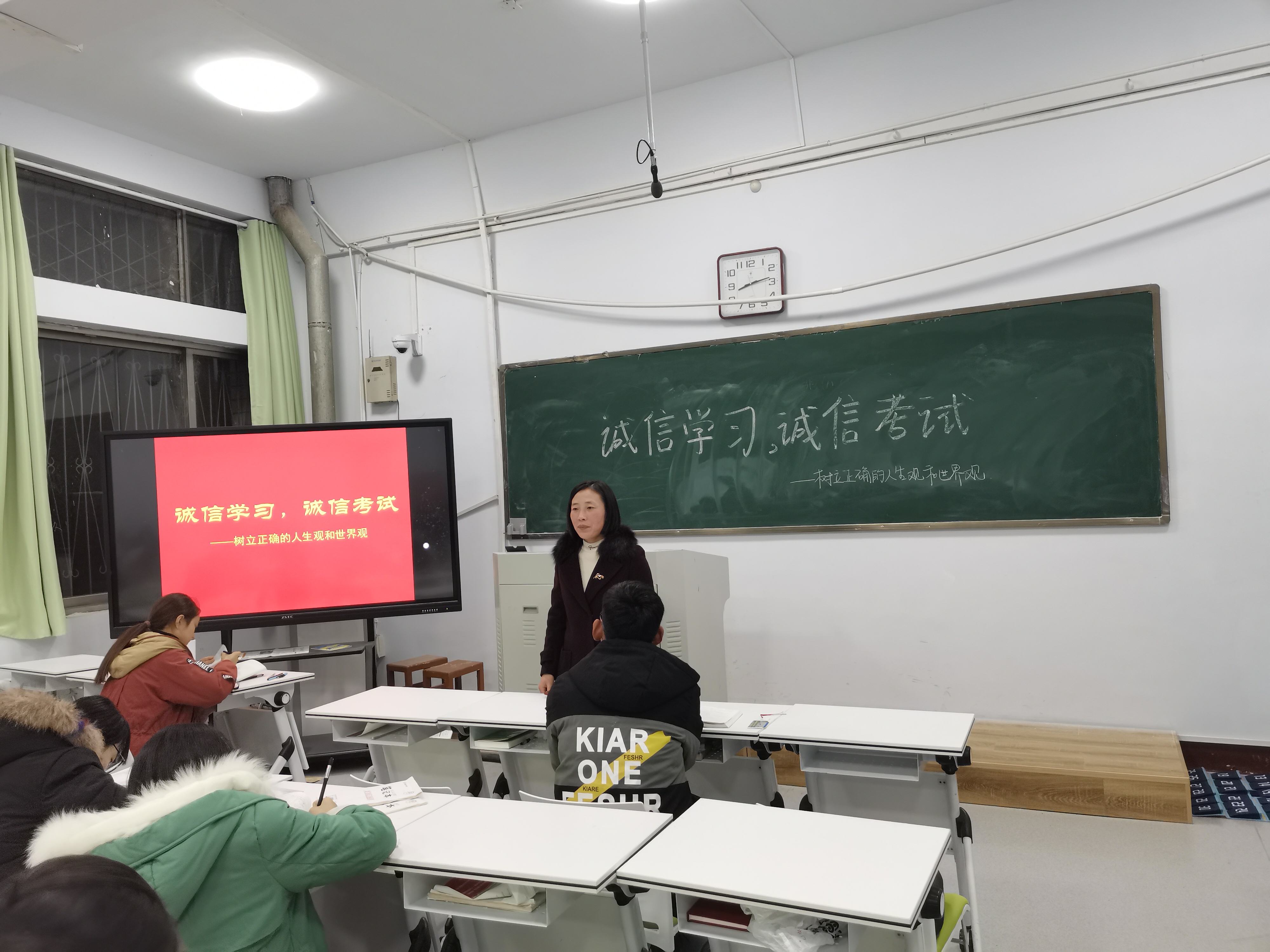 在诚信考试主题班会上,辅导员通过案例分析,向同学们开展了诚信警示教育和普法教育,宣读了《学生手册》中考试违规的常见形式以及考试违纪、作弊的处理办法,让学生们牢固树立了守信为荣、失信可耻的道德观念。针对考试作弊的弊端,同学们热烈讨论,积极发言,纷纷表示考试作弊不但严重败坏学校的学风,荒废自己的学业,而且还养成了冒险和侥幸心理,破坏了公平竞争的规则。最后,学生们自觉签署诚信考试承诺书,确保学院学考诚信教育落到实处。