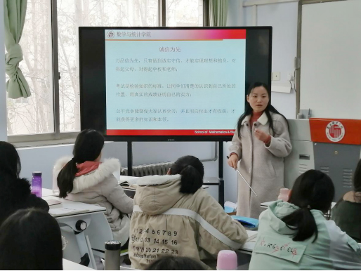 通过开展本次“诚信考试”和“专业课复习”主题班会,对学生数学专业课知识的学习进行了有针对性的指导,帮助学生树立了诚信为荣作弊可耻的道德观念,对加强学院班级学风建设营造积极向上的学风有重要意义。