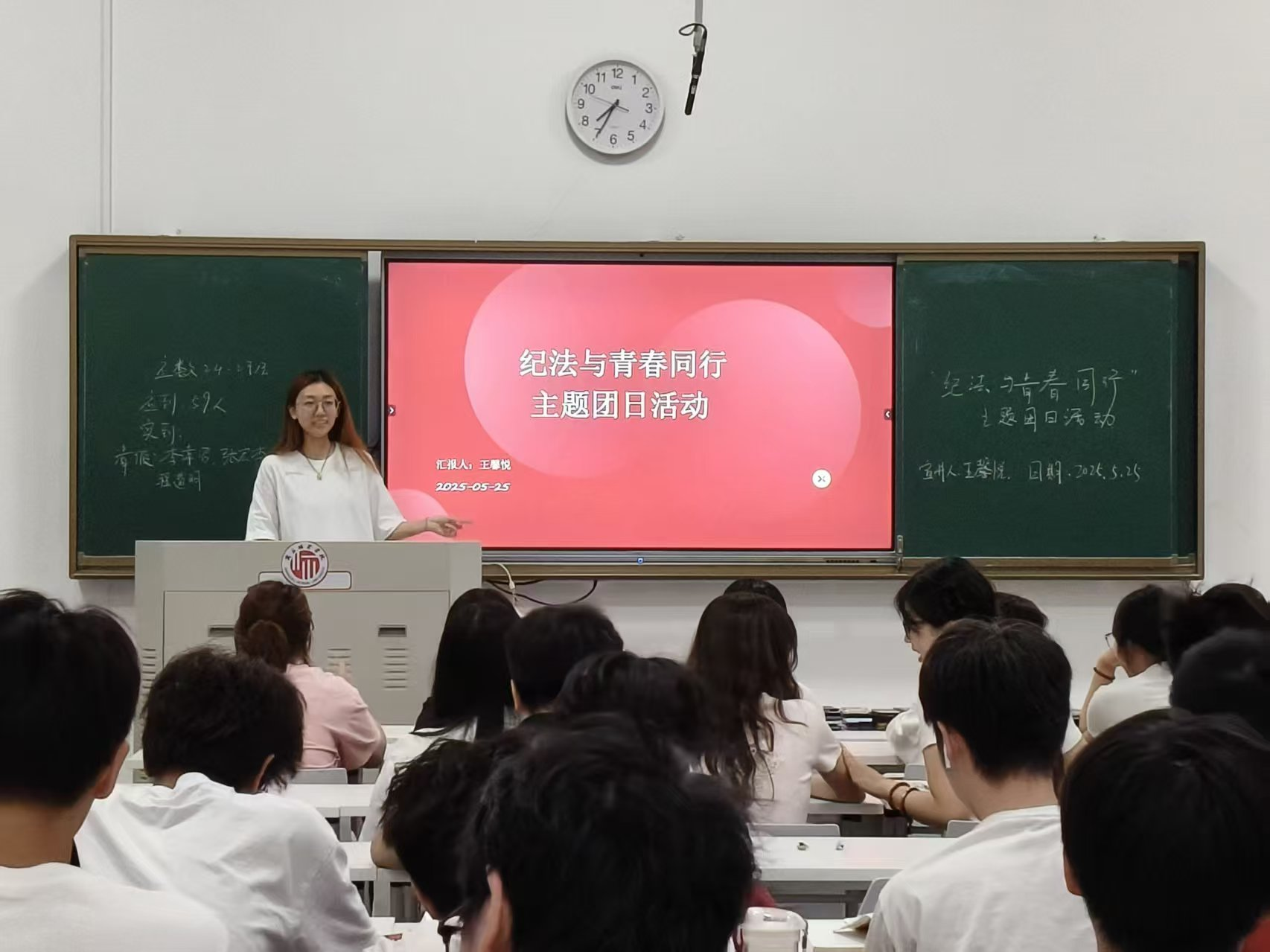 2025年5月25日晚上7点半,数学与应用数学2024级2班团支部于梁园校区行方楼334教室组织开展了“纪法与青春同行”主题团日活动。