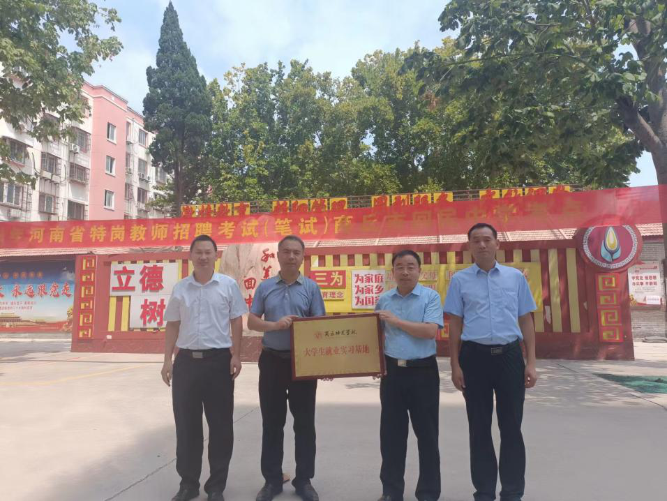 随后,徐茂田一行又先后到商丘市回民高级中学和商丘市第六中学考察交流,就大学生就业实习和学生实践教学锻炼方面进行了深入探讨交流,希望通过本次交流沟通,进一步加强供需对接,在专业共建、人才培养等方面达成共识,共同推动高校毕业生高质量就业,实现合作共赢、共同发展。徐茂田分别与商丘市回民高级中学校长李玉柱和商丘市第六中学副校长陈瑕代表双方签订了大学生就业实习基地协议并授牌。